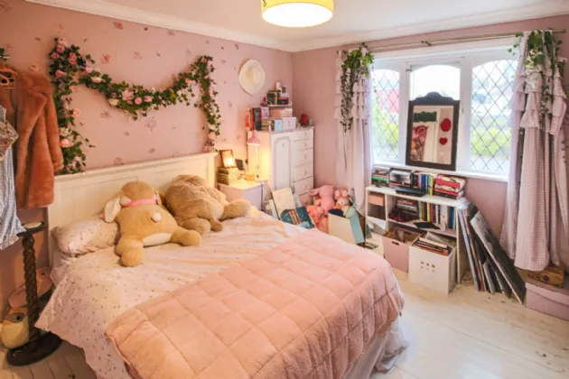 Bedroom 5 2.91m x 2.44m T&G wood flooring, coving, curtain pole & blind.