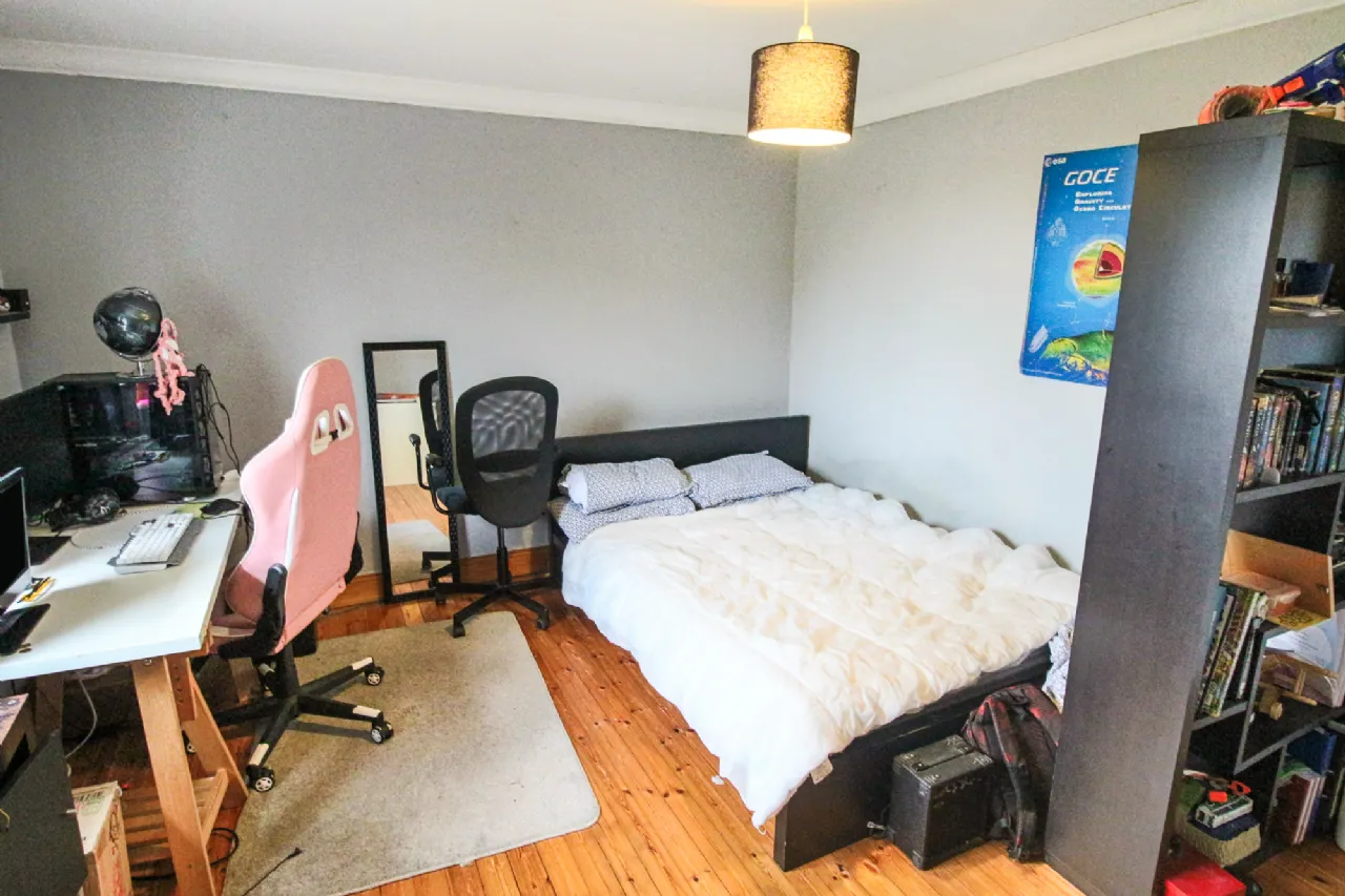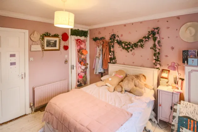 Bedroom 2 3.87m x 3.82m Solid wood flooring, radiator, curtain pole & curtains, coving.