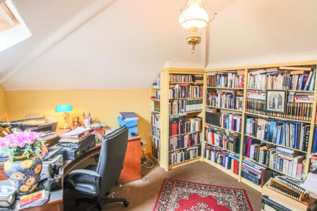 Study/Office 3.57m x 3.14m Damask wallpaper feature, Velux roof light.