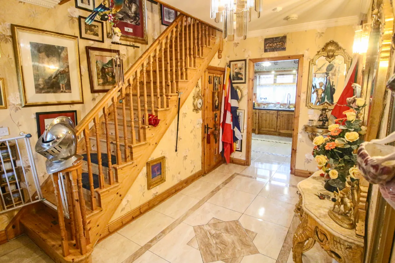 Entrance Hall 4.83m x 3.17m Floor tiling, centre rose & coving, radiator, under stairs cloaks. Door to Garage Conversion