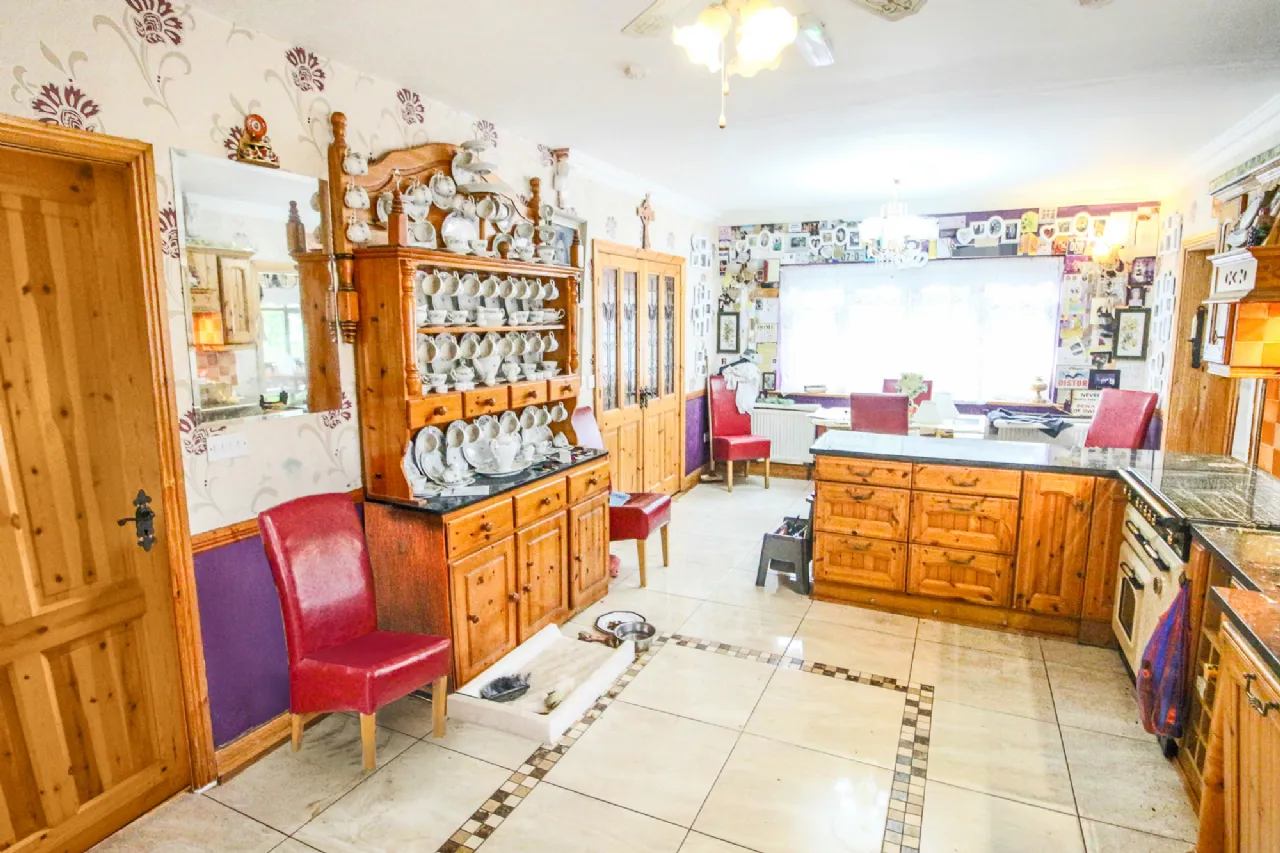 Main Kitchen/Dining Room 7.15m x 3.68m Double doors to living room Fitted kitchen units with worktop Double doors to sunroom Radiators x2, wood slatted blinds, recessed down lights, feature ceiling lights Centre rose & coving Floor tiling