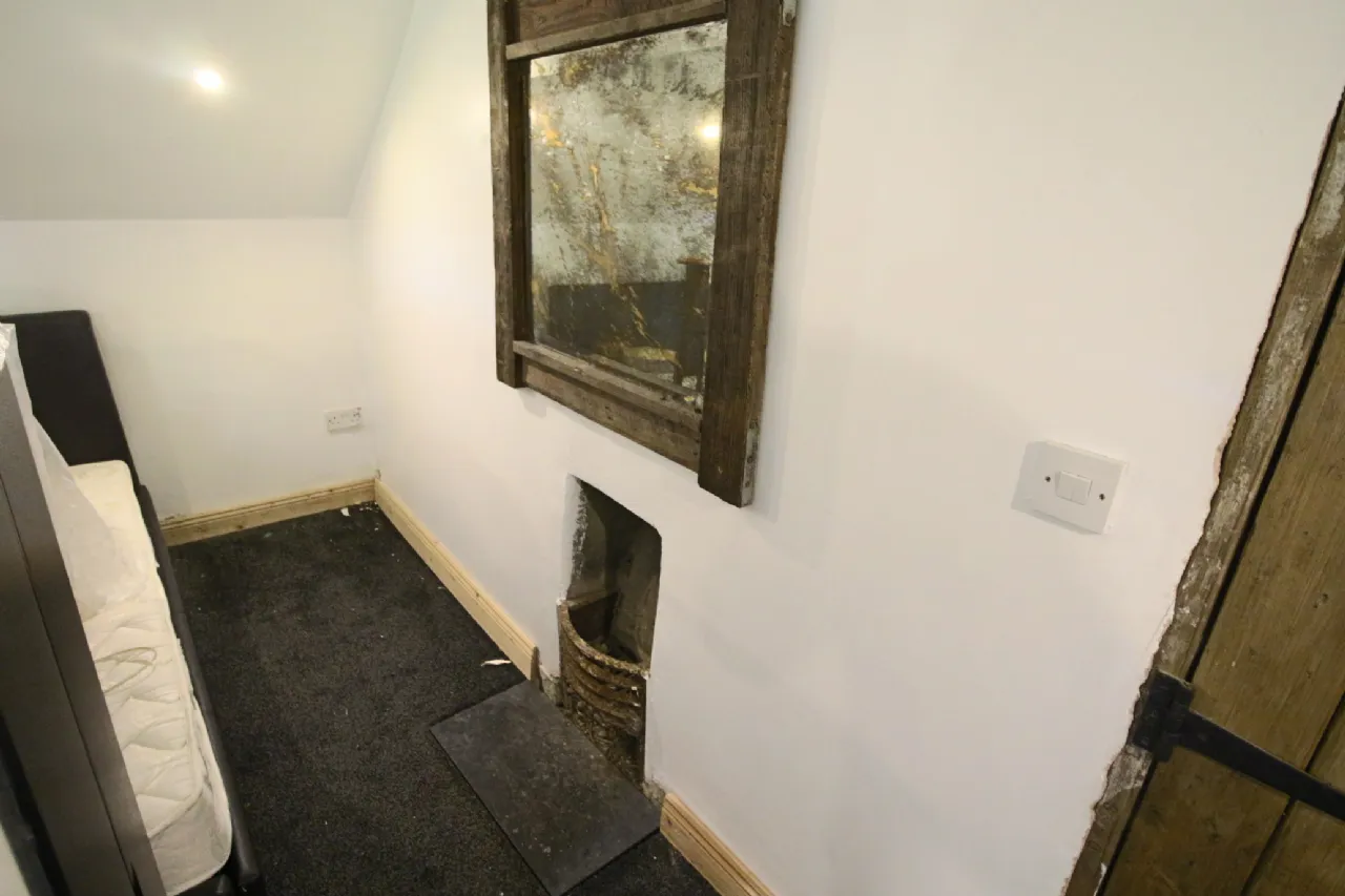 Bedroom 2 4.53m x 2.81m Carpet, open fire, wall panel heater, window, downlighters.