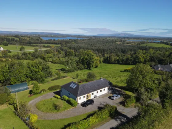 Superb opportunity to acquire a very fine detached residence on a circa 0.74 acre, mature, private site, enjoying an excellent location and aspect with spectacular, panoramic views of Drumharlow Lough (River Shannon system), Arigna mountains and surrounding environs.