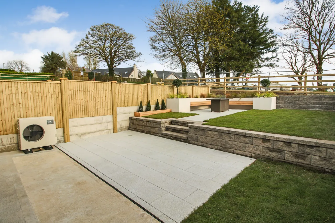 Underfloor heating on ground floor with energy efficient aluminium radiators throughout. A-rated Air-to-Water Heat Pump with smart thermostat.