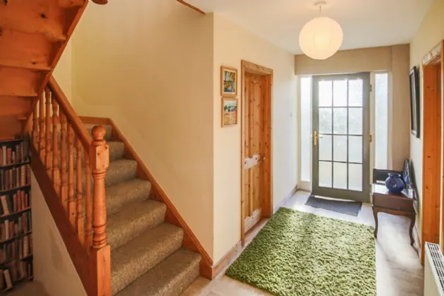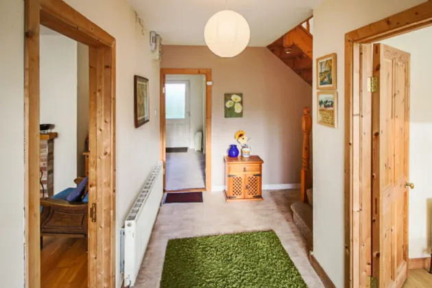 Entrance Hall 10.31m2 Laminate floor tiling, radiator, carpeted stairwell to first floor.