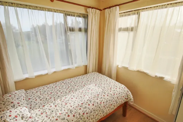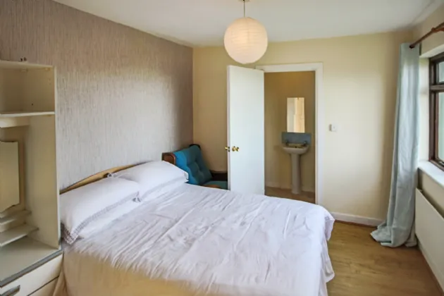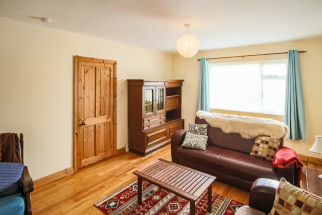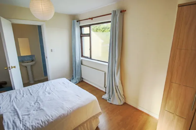 Bedroom 1 3.93m x 3.05m Pleasant views onto Lough Allen and mountain, wood flooring, radiator, curtain pole & drapes.