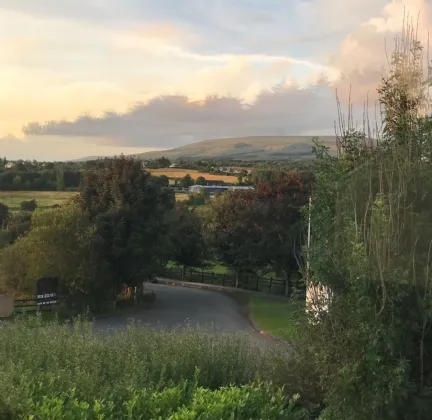 Bedroom 3 3.17m x 3.06m Pleasant views onto Lough Allen and mountains, wood flooring, radiator, curtain pole & drapes x2.