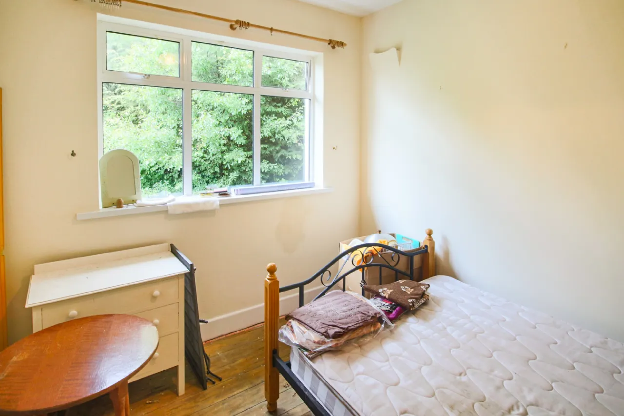Bedroom 3 3.05m x 2.81m Wood flooring, radiator, curtain pole
