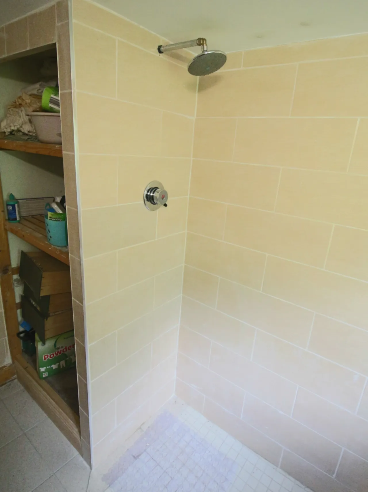Wet Room 2.62m x 1.78m Walk in shower, radiator, shaver point & light, shelved storage area, whb, tiled