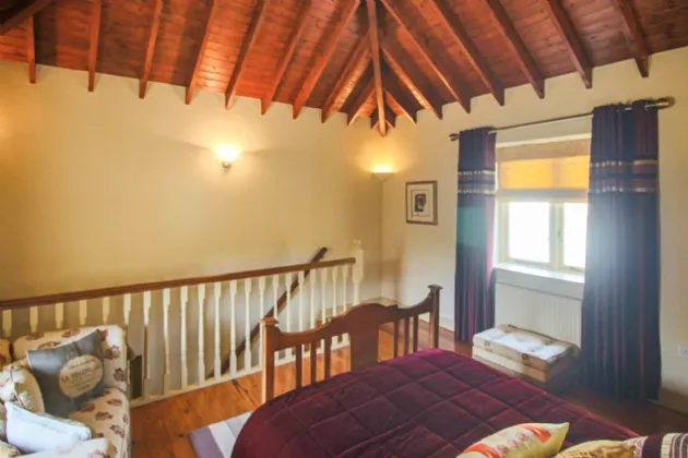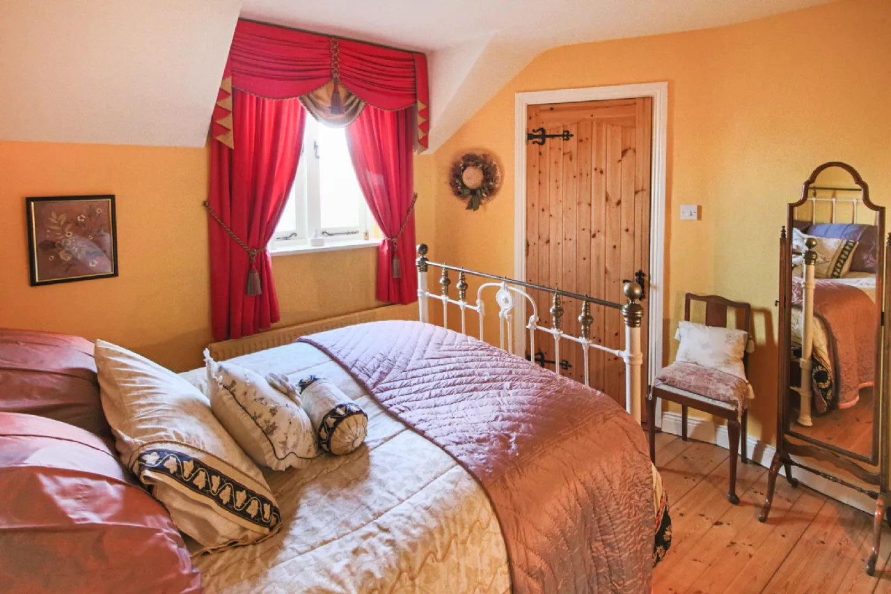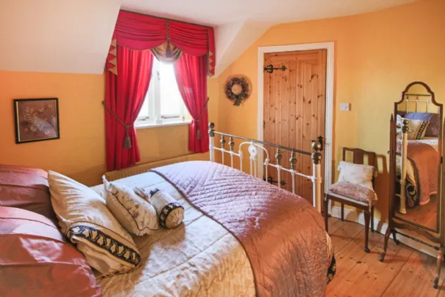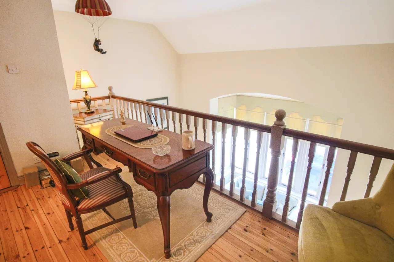 Bedroom 4 5.16m x 4.1m Reclaimed wood floor, walk in closet, windows x3 with curtain poles & drapes, radiators x2, telephone point, downlights, lovely water and mountain views.
