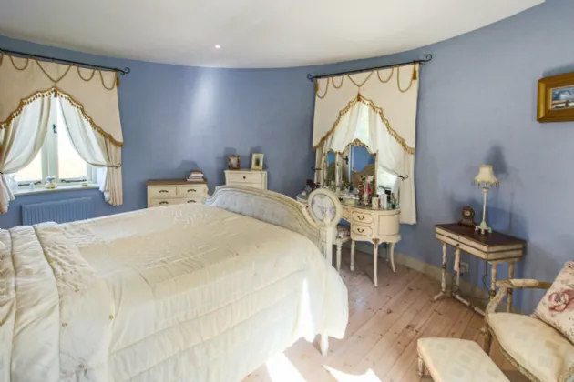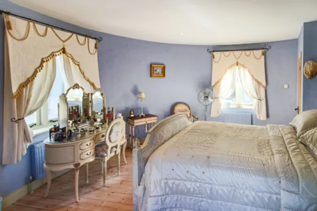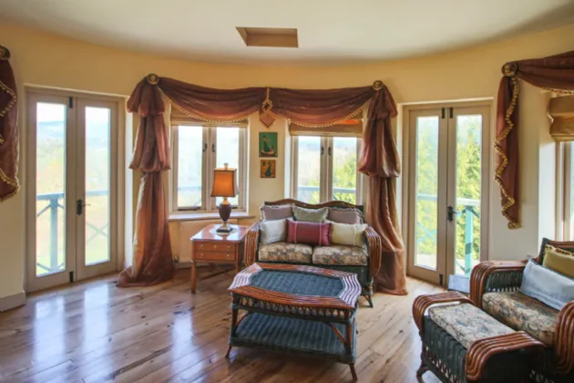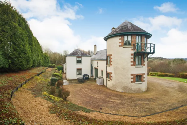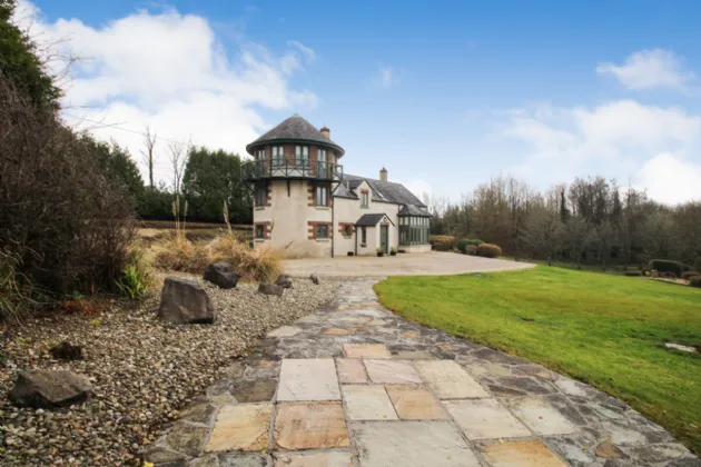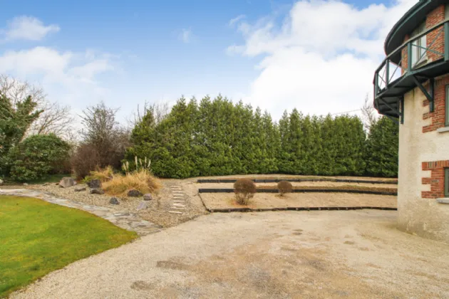 This stunning home delights in so many ways, from its sweeping driveway flanked by lush landscaping, terraced gardens and subtle rockeries, to its most pleasing facade and elevations featuring natural lime render, Donegal sandstone cladding, York handmade brick, authentic Bangor blue Welsh slate, and of course, its tower feature with wrap-around balcony.