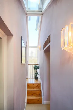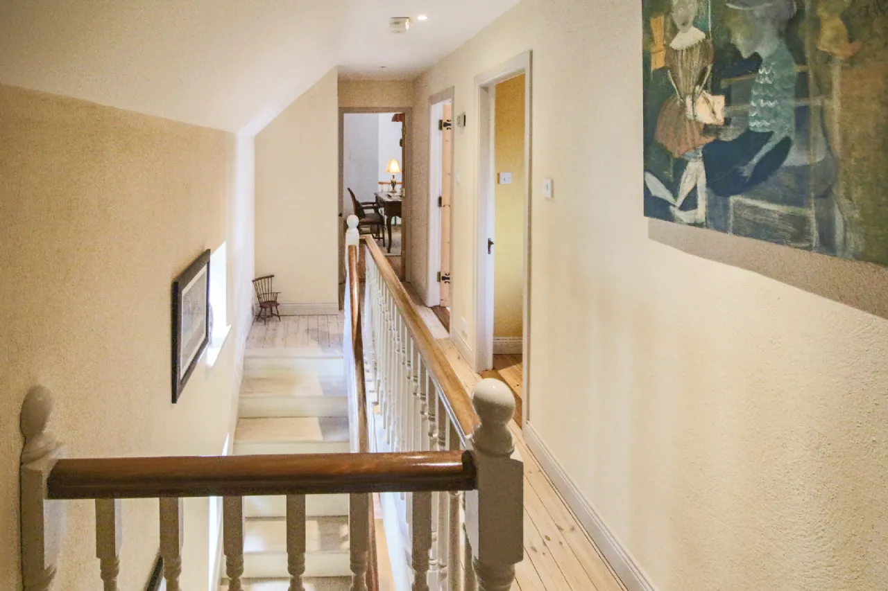 First Floor Landing Reclaimed wood flooring, airing cupboard, painted stairs with hardwood hand rail, downlighters.
