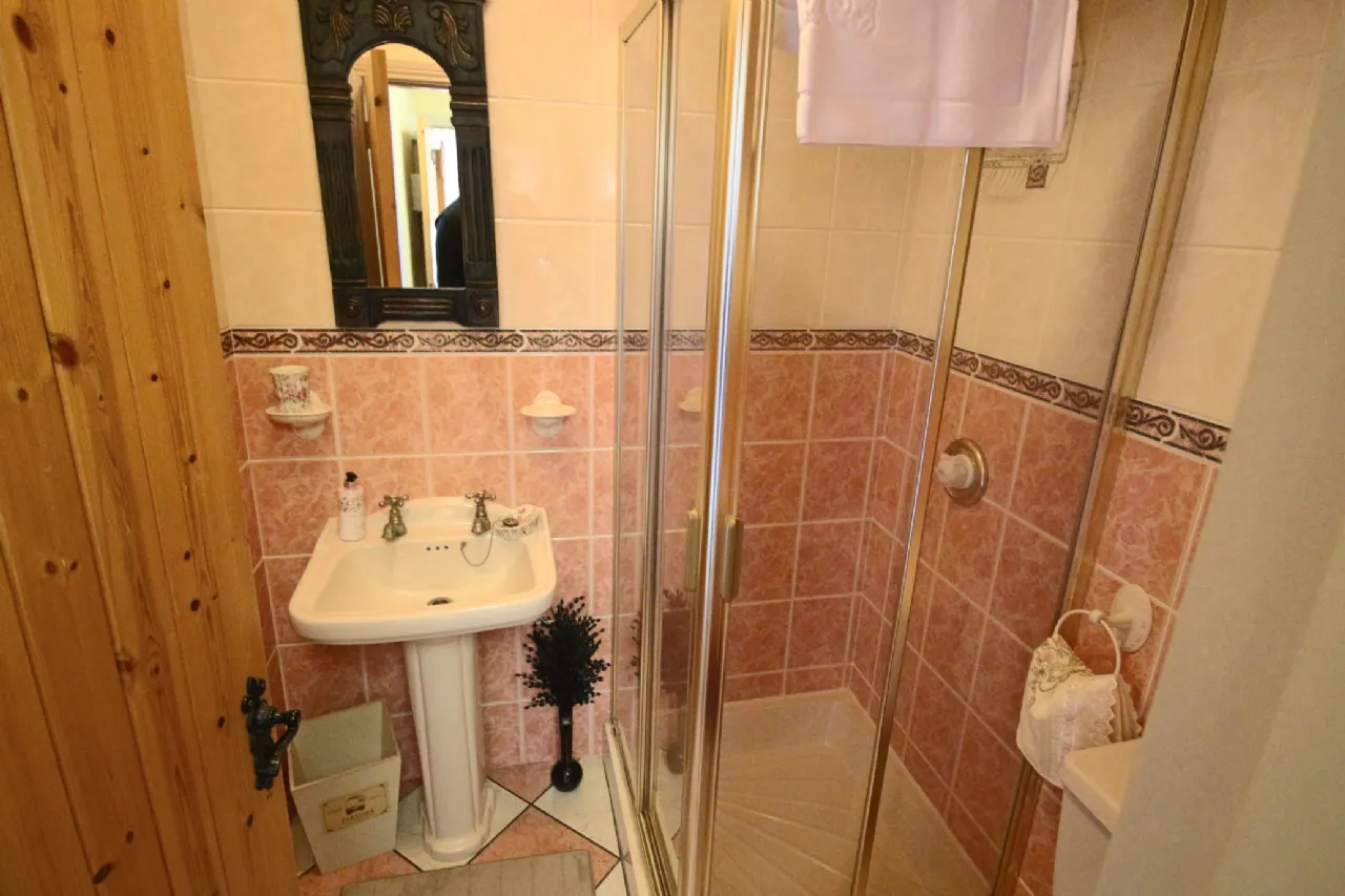 Shower Room 1.65m x 1.53m Fully tiled with Sirus power shower, shaver point, radiator, wc & whb.