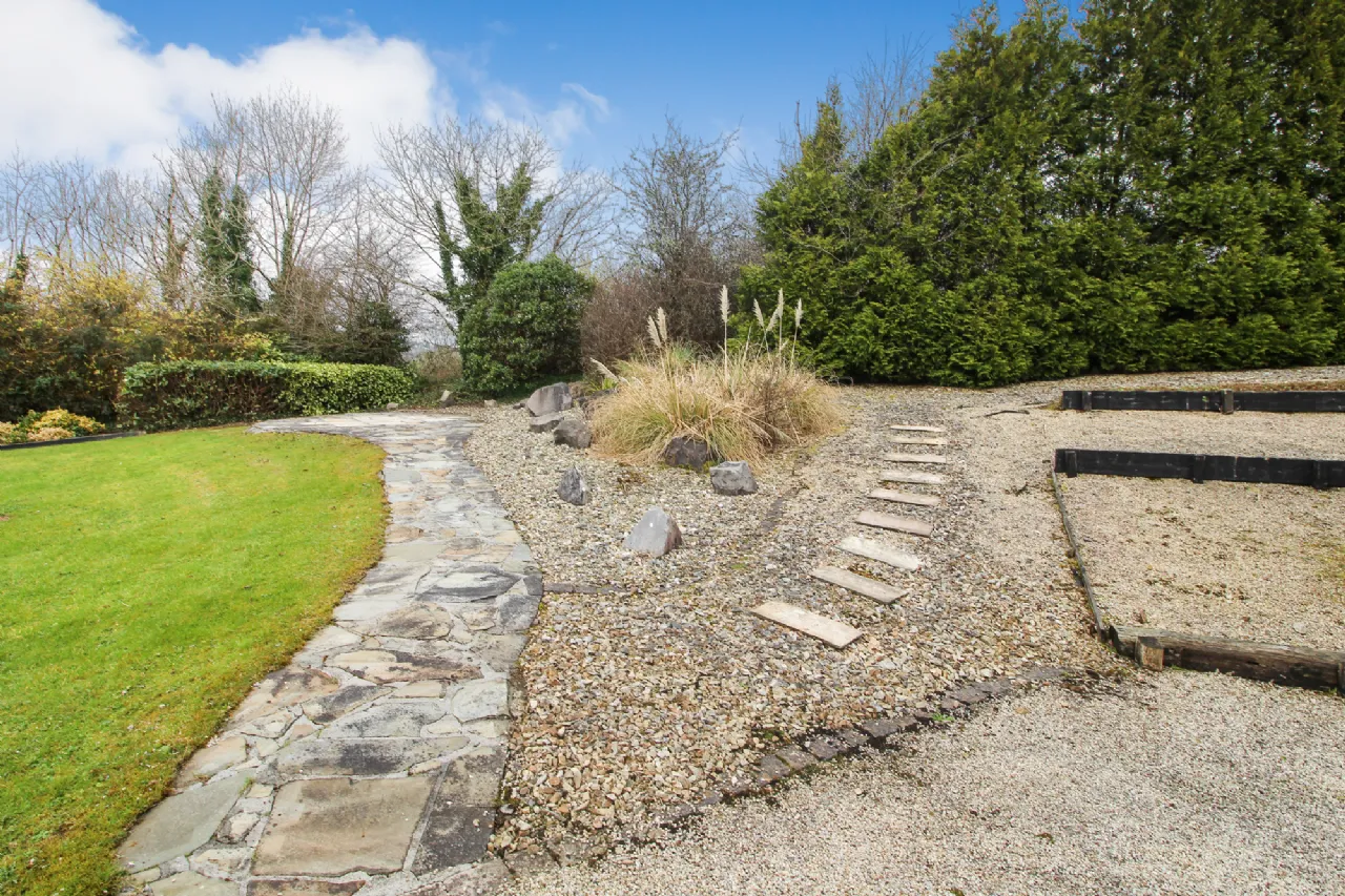 External Detached garage with oil burner. Wrought iron entrance gates with electronic controls, sweeping driveway with gravel finish, extensive parking areas to front and side. Fully mature, landscaped site providing great privacy and security with terraced, raised beds, rockeries, stone paths, variety of shrubs and abundant tree planting.
