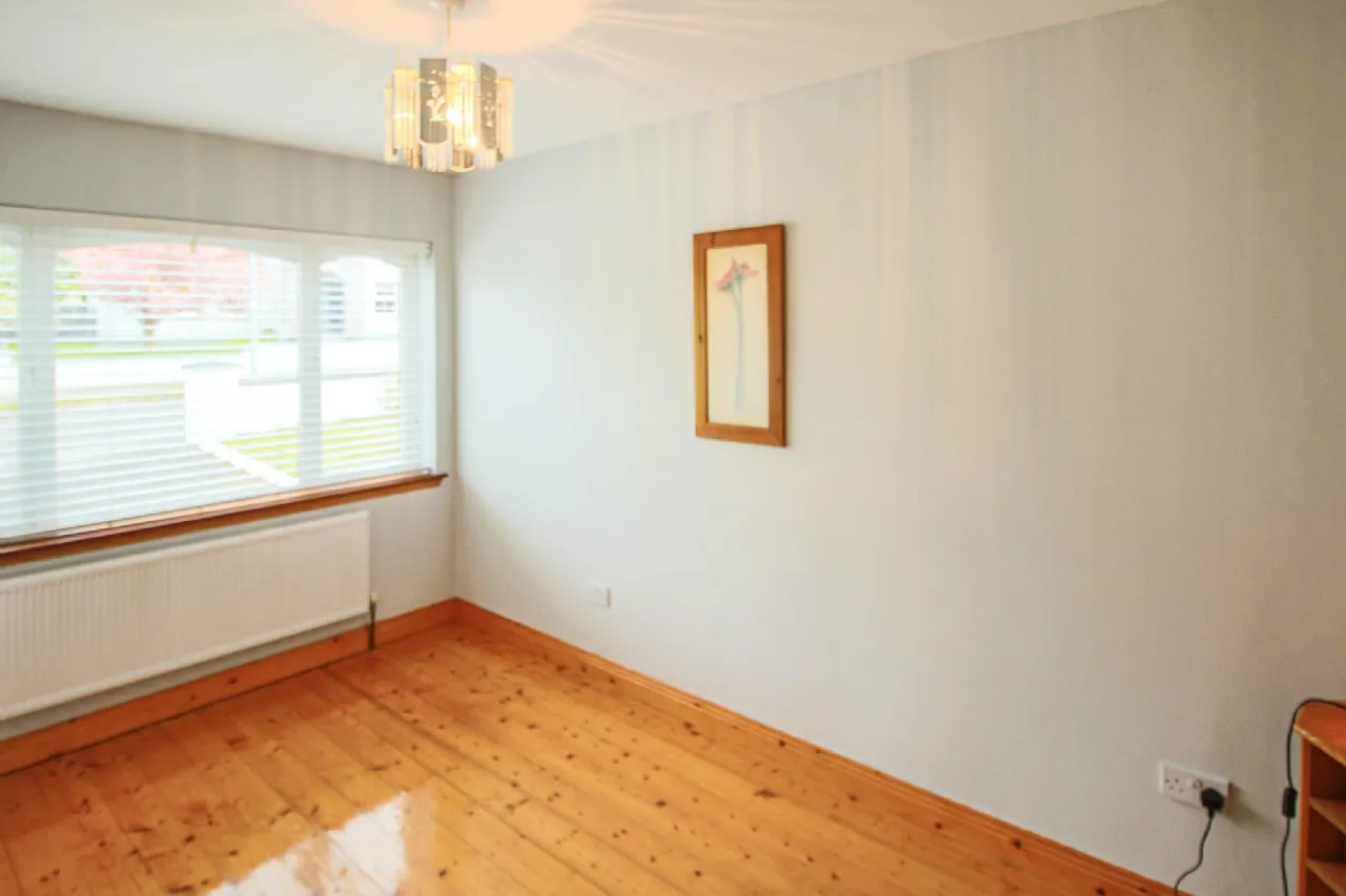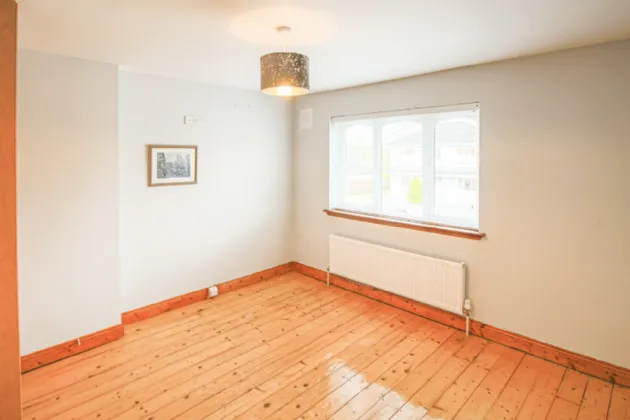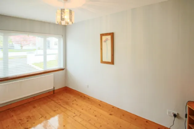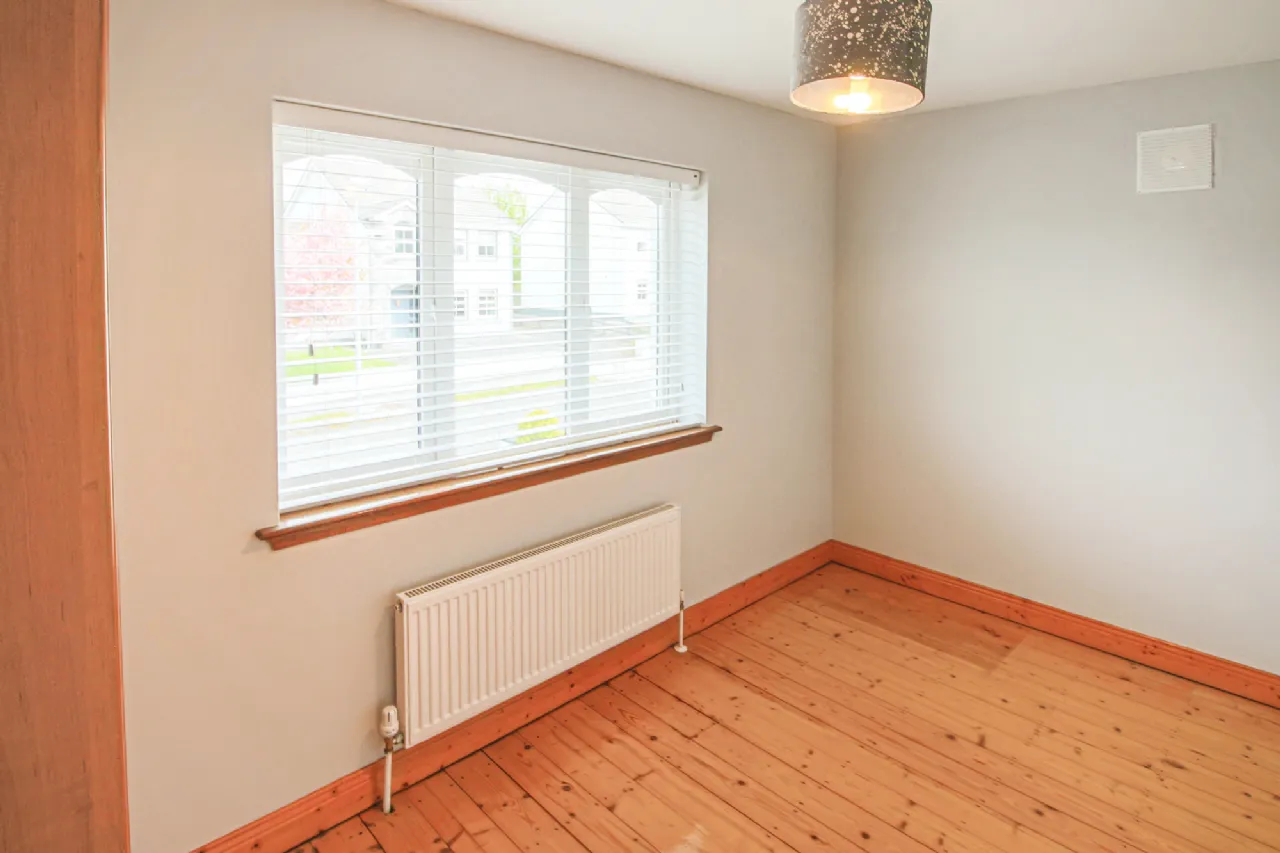 Playroom/Bedroom/Office 4.11m x 2.48m T&G wood floor, ornate ceiling light fitting, radiator, faux wood slatted blinds.