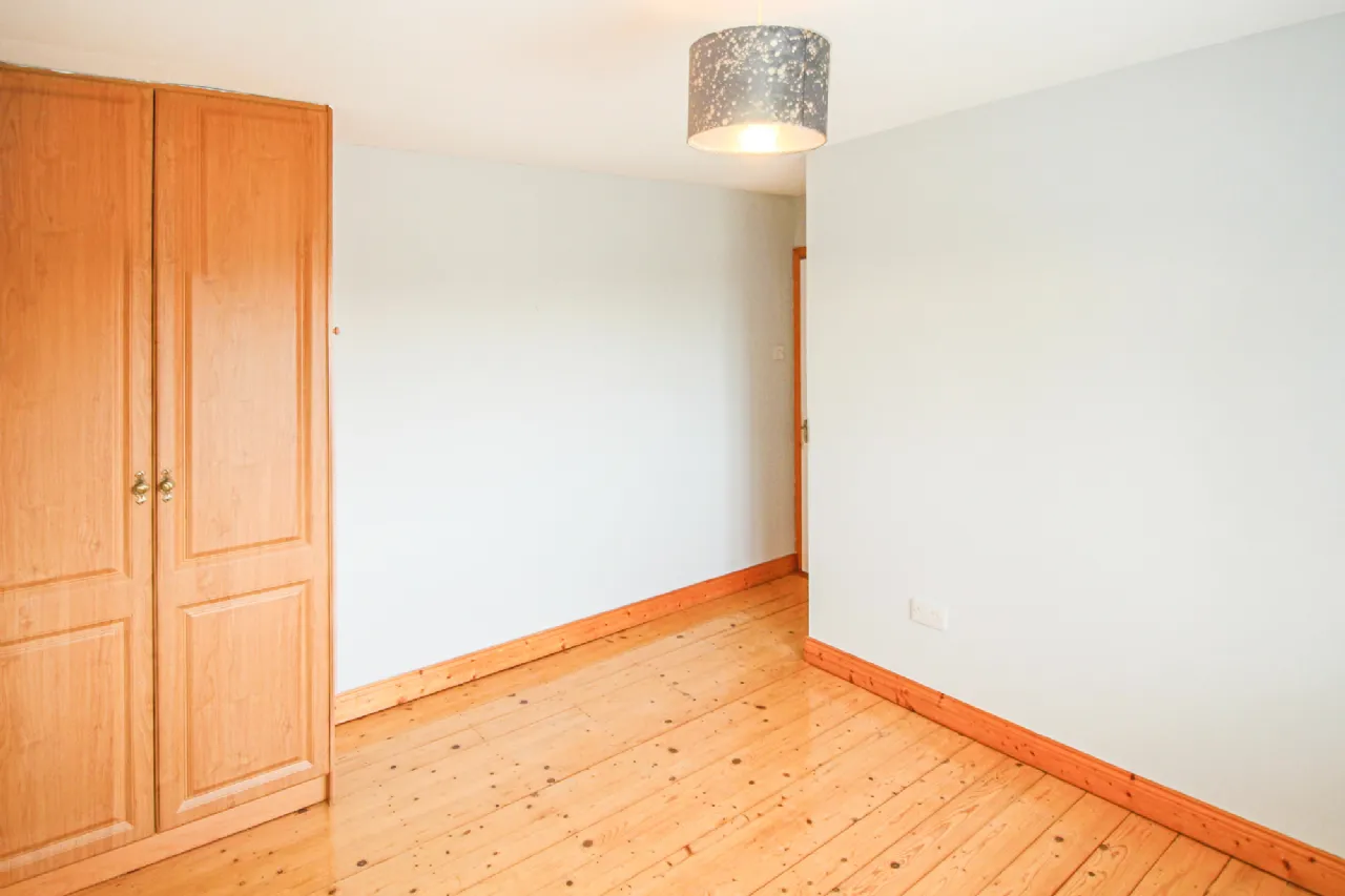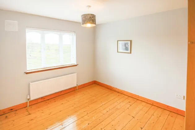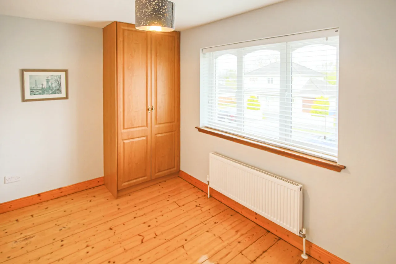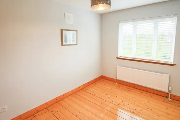 Bedroom 2 3.90m x 2.46m T&G wood floor, wood slatted blind, built in wardrobe.