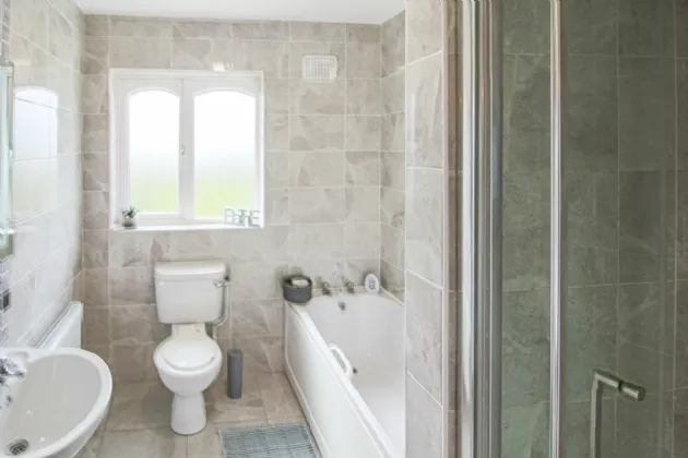 Bathroom 2.83m x 2m Newly, fully tiled, bath, wc&whb, shower enclosure.