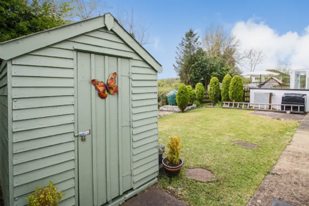 External Tarmac drive, lawn to front, concrete walls, shrubs, patio, oil burner & kerosene tank.
