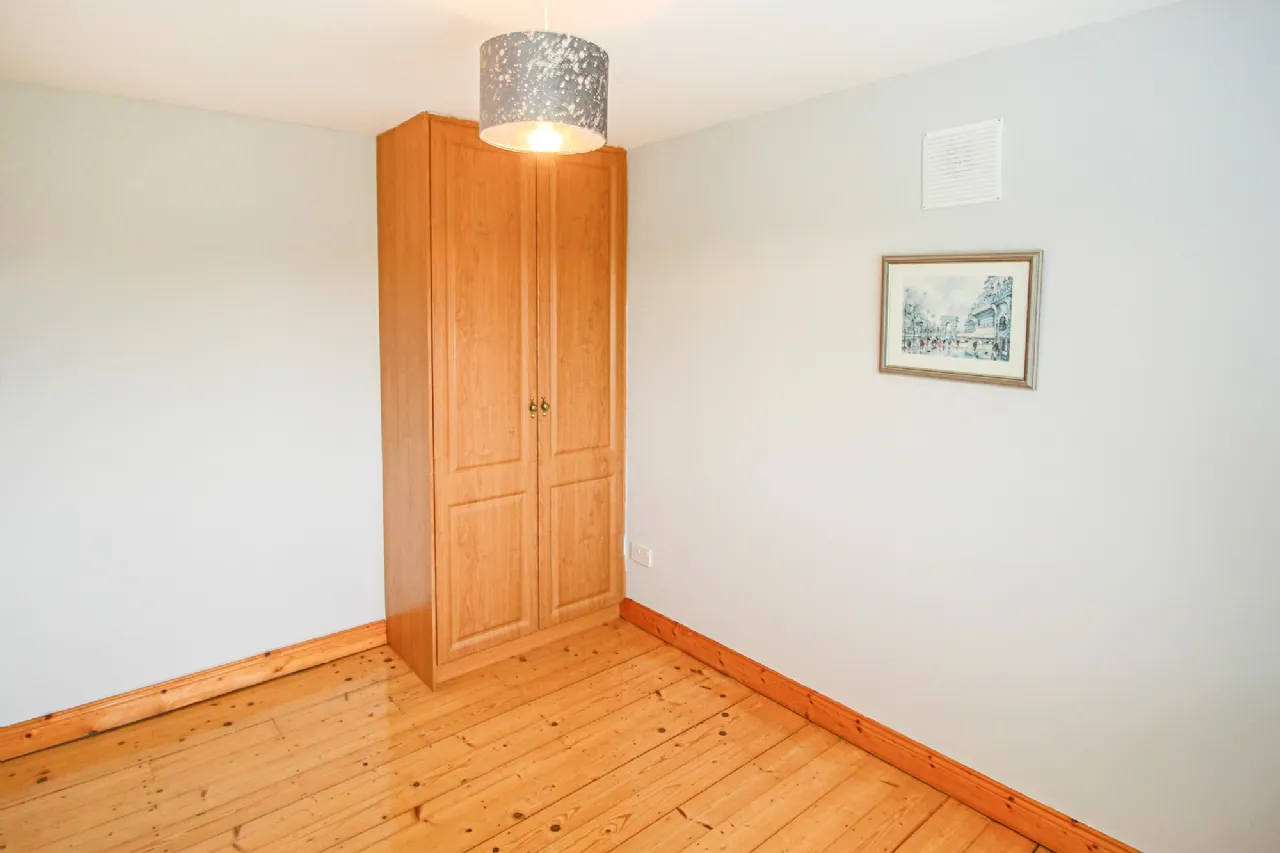 Bedroom 4 3.74m x 1.82m T&G wood floor, wood slatted blind, built in wardrobe.