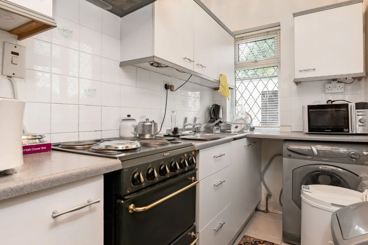 Kitchen 3.1m x 1.4m fitted kitchen units, door to side