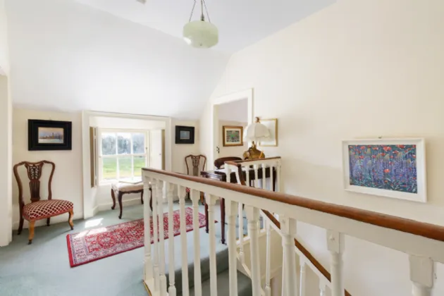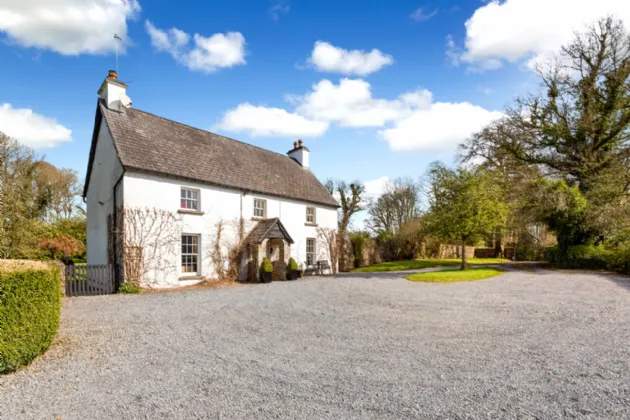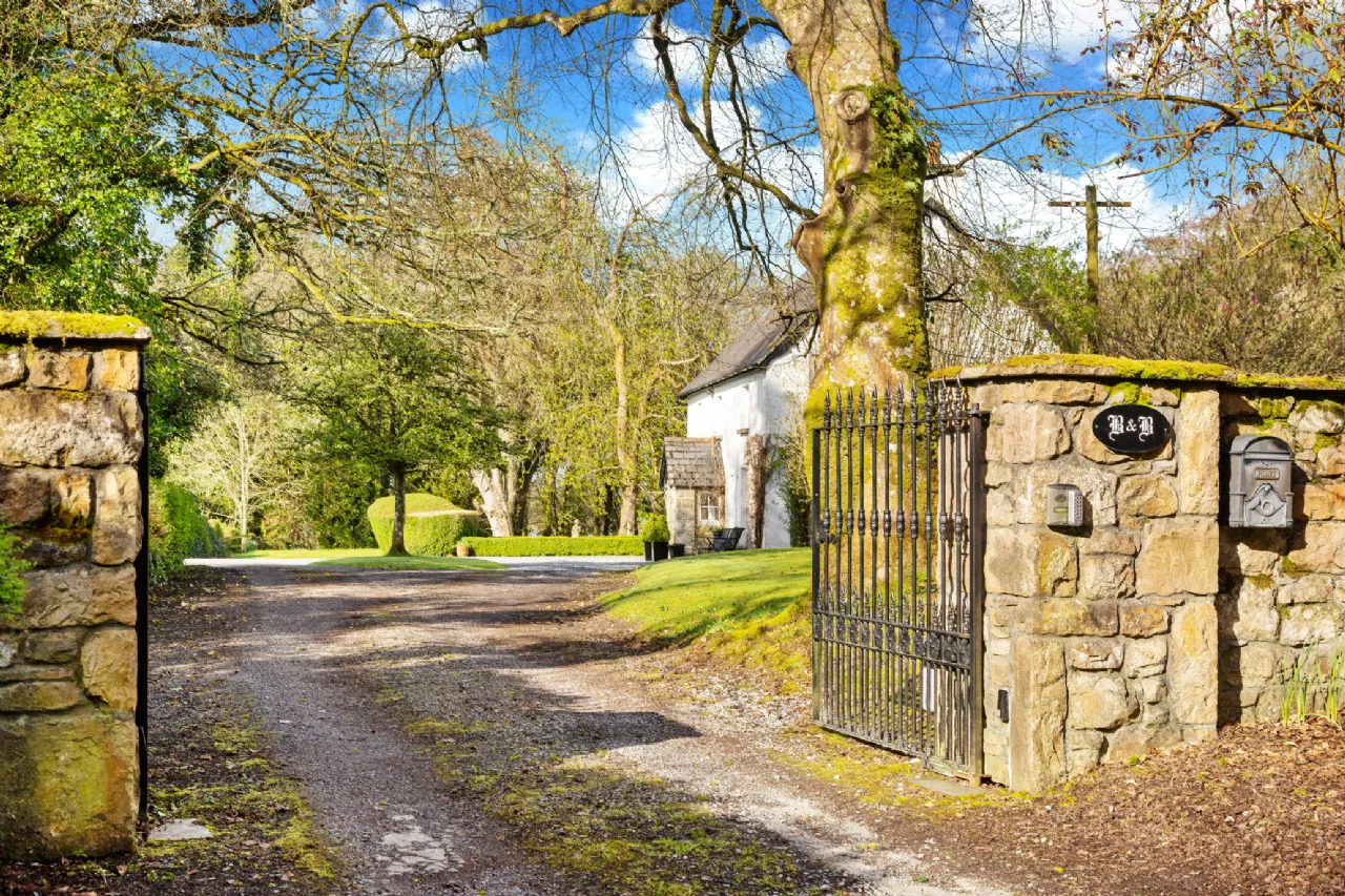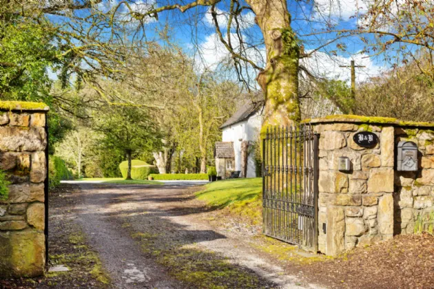 The property is approached by a tree lined driveway of native beech and oak tree, entered via a dual entrance both with crafted stone pillars and a pair of decorative cast iron gates eventually culminating in a turning circle and a parking area with ample space.