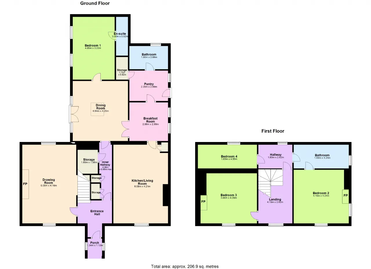 Upstairs there are three spacious double bedrooms one of which is ensuite. Each bedroom is carpeted throughout and has timeless sash windows complemented by matching window shutters. This charming family home offers elegance and comfort. Cosy fireplaces warm the house in winter while the sunny dining room allows enjoyment of the gardens and nature at all times of year.