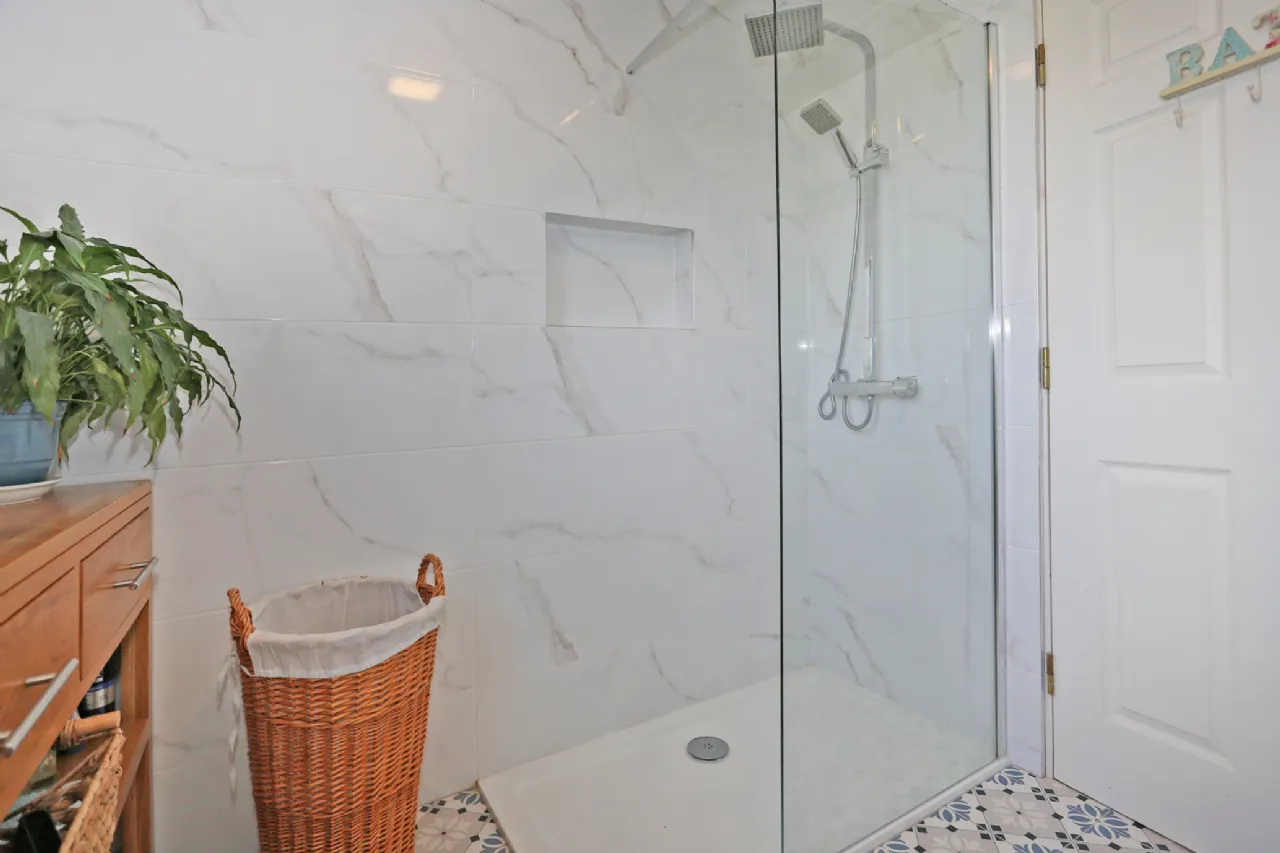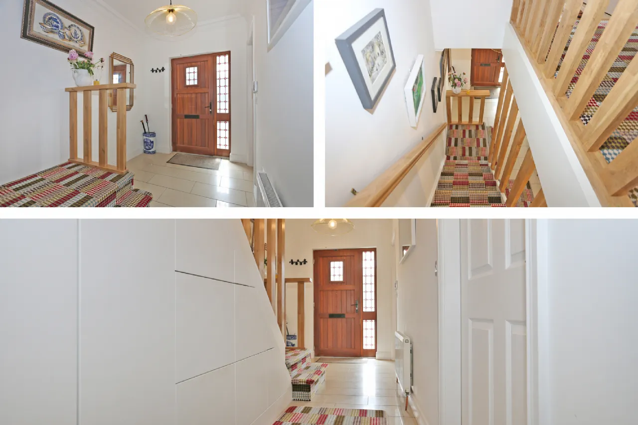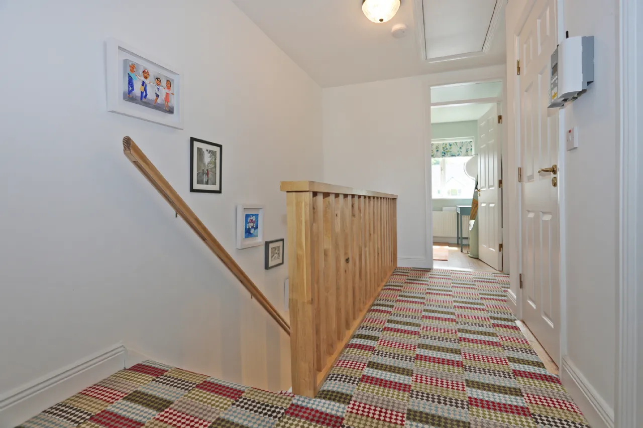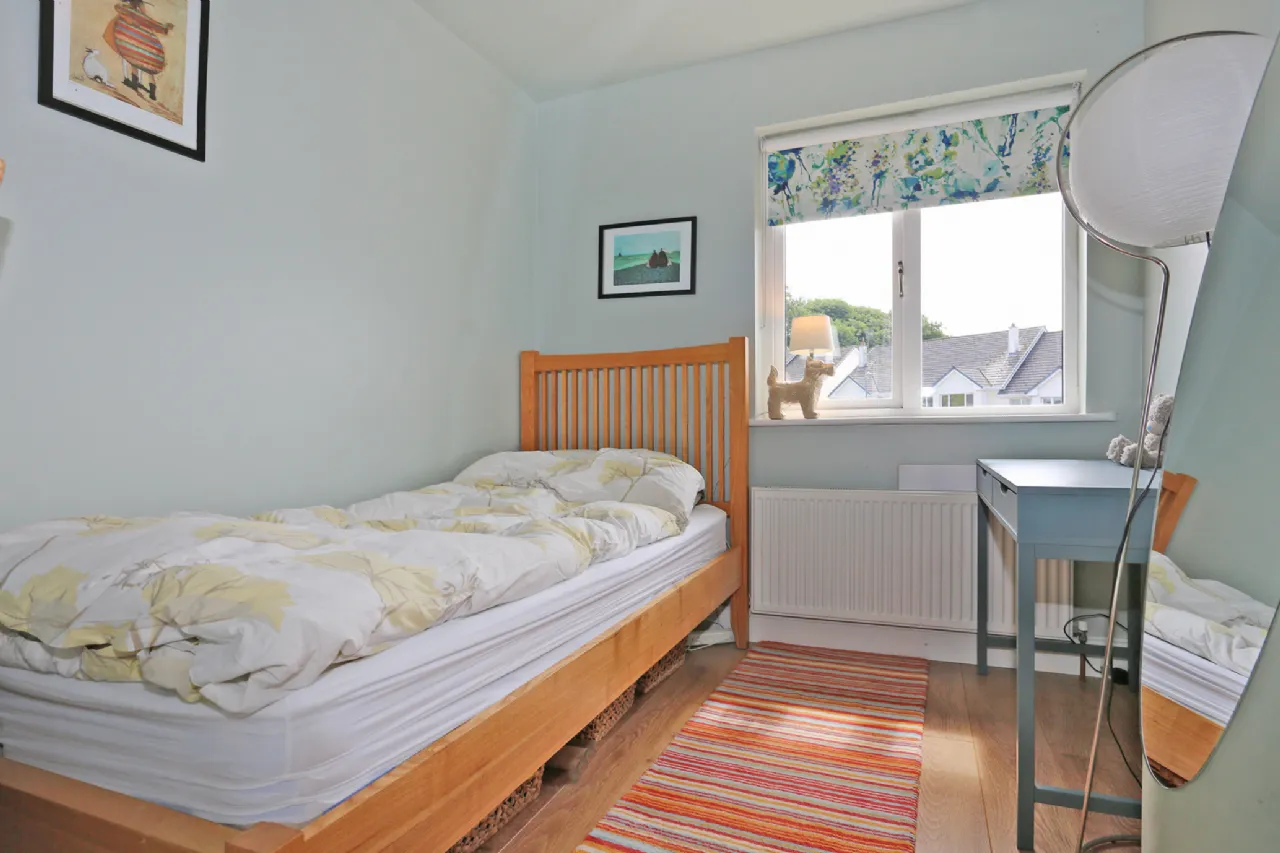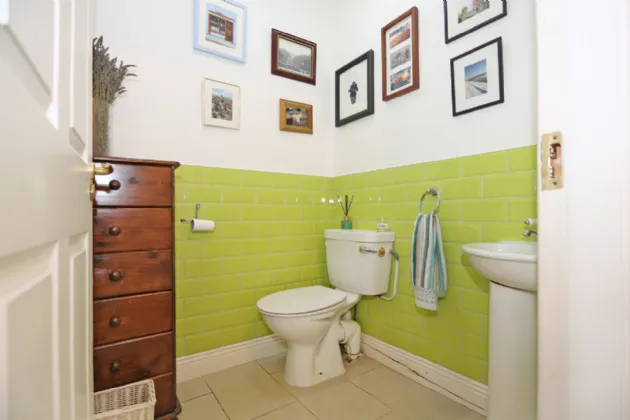 On entering the hall door you are greeted by a bright, wide entrance hall which sets the tone for the rest of the house. The quality finishes are immediately evident with oak spindles on the stairs and the living room on the left with fitted shelving and cabinetry in the recesses. The wood burning stove in the living room provides a focal point, while the feature bay window offers ample seating space. There is a downstairs WC off the hallway and the kitchen/dining room has a large side window which allows natural light to flood in, whilst there are double doors to the garden at the rear. The utility room has side access to the garden and separates the laundry from the kitchen, allowing the kitchen to be used as a perfect space for entertaining, cooking and simply relaxing with the view across the garden. Upstairs are three bedrooms, with an ensuite shower room from the main bedroom and a generous family shower room, both of which are recently refurbished.