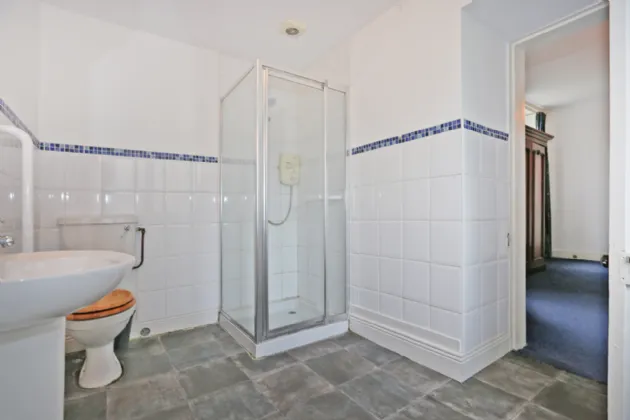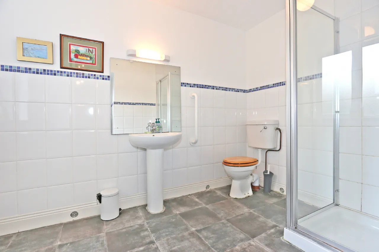Shower Room With part tiled walls, shower cubicle, pedestal WHB, WC