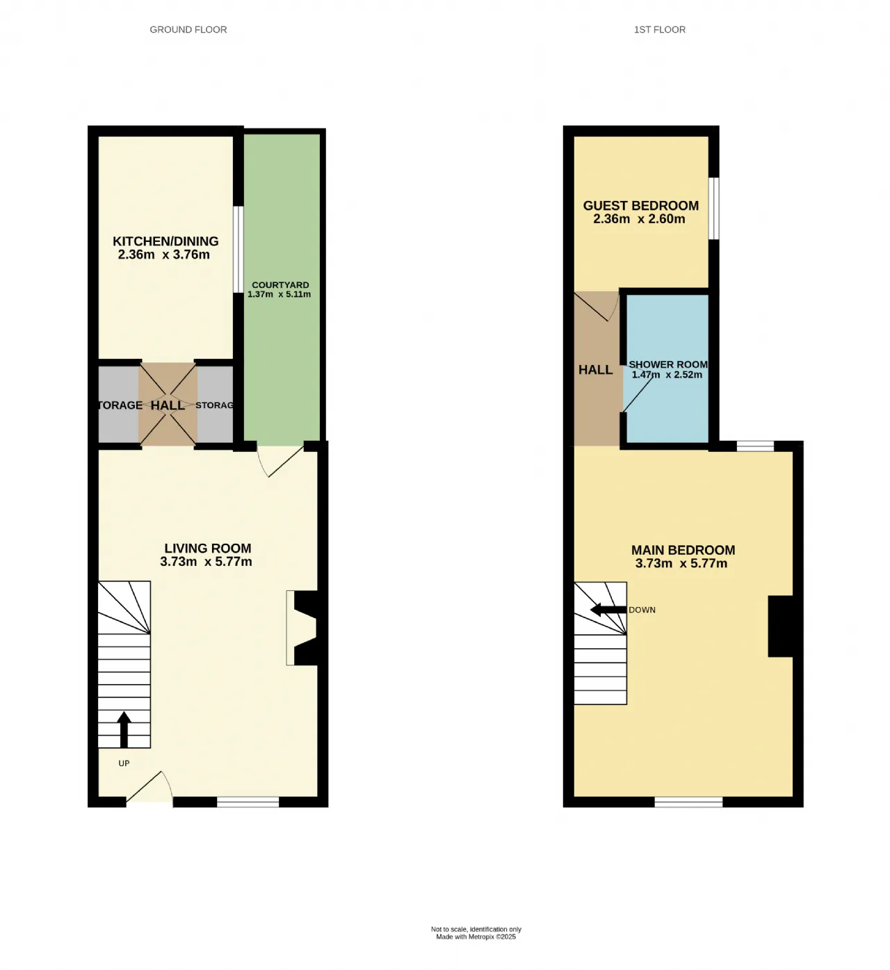 Stepping into the house there is an immediate feeling of a cosy, yet contemporary interior, which is well presented and offers an ideal amount of space for both couples and singles alike. The main living room has a wood burning stove, creating a perfect ambience, with a door to a rear courtyard garden which provides a lovely, low maintenance outdoor space. There is a kitchen/dining room at the rear of the house, with space for cooking, entertaining and eating. Upstairs opens out to an open plan main bedroom at the front of the house, which was originally two bedrooms and now has a high vaulted ceiling adding to the character of the home. There is a hall from here leading to a modern, white suite shower room and further guest bedroom to the rear of the house.