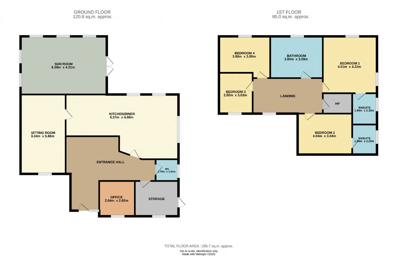 Accommodation: Entrance hallway, living room, kitchen/breakfast/dining room, sunroom, study/bed 5, utility room, guest wc, 4 bedrooms, 2 ensuite, family bathroom. Detached garage, Utility shed.