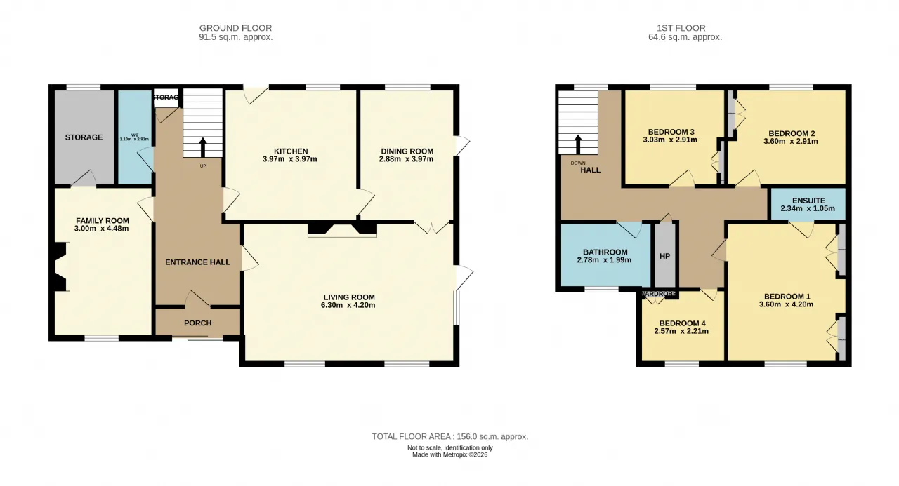 To the right of the main entrance hall is an additional family room, complete with an open fireplace, offering excellent flexibility as a second living area, playroom, or home office. Located just off this room is a useful storage room, while a guest WC completes the ground-floor accommodation.