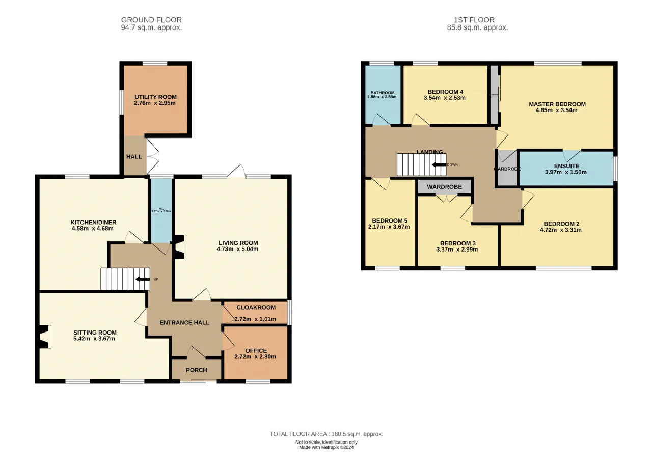 Accommodation: Entrance Hall, Cloakroom, Guest WC, Living room, Sitting room, Kitchen/Diner, Utility room, 5 first floor bedrooms (4 double & 1 single), Family bathroom, Ensuite.