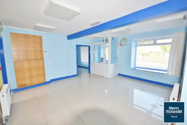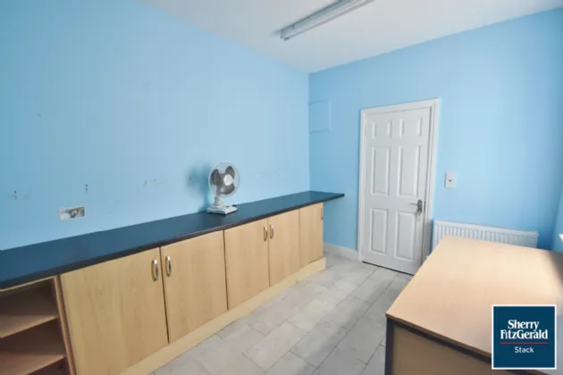 Public Office / Reception 5.36m x 5.25m Ceramic porcelain floor tiles, fitted shleving units and one window.