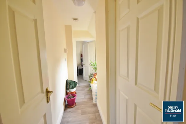 Entrance Hall 6.04m x 1.36m Lino tile flooring, wooden door with window panel and RCCB cabinet and smart meter box.