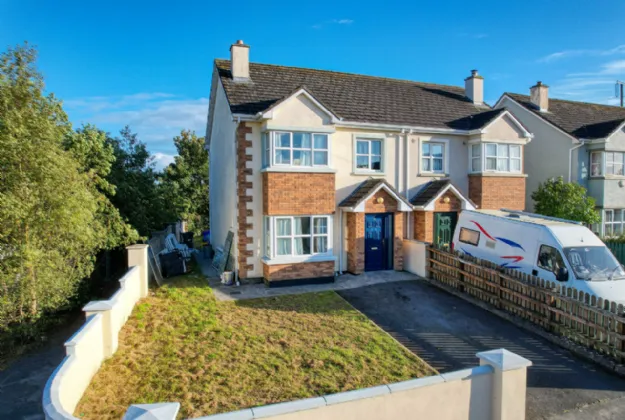To the rear of the house there is a fenced in lawn area. There are agricultural lands to the rear of the house. To the side there is a small garden in decorative stone with paved footpaths. With parking at the front of the house and across the road by the park green.