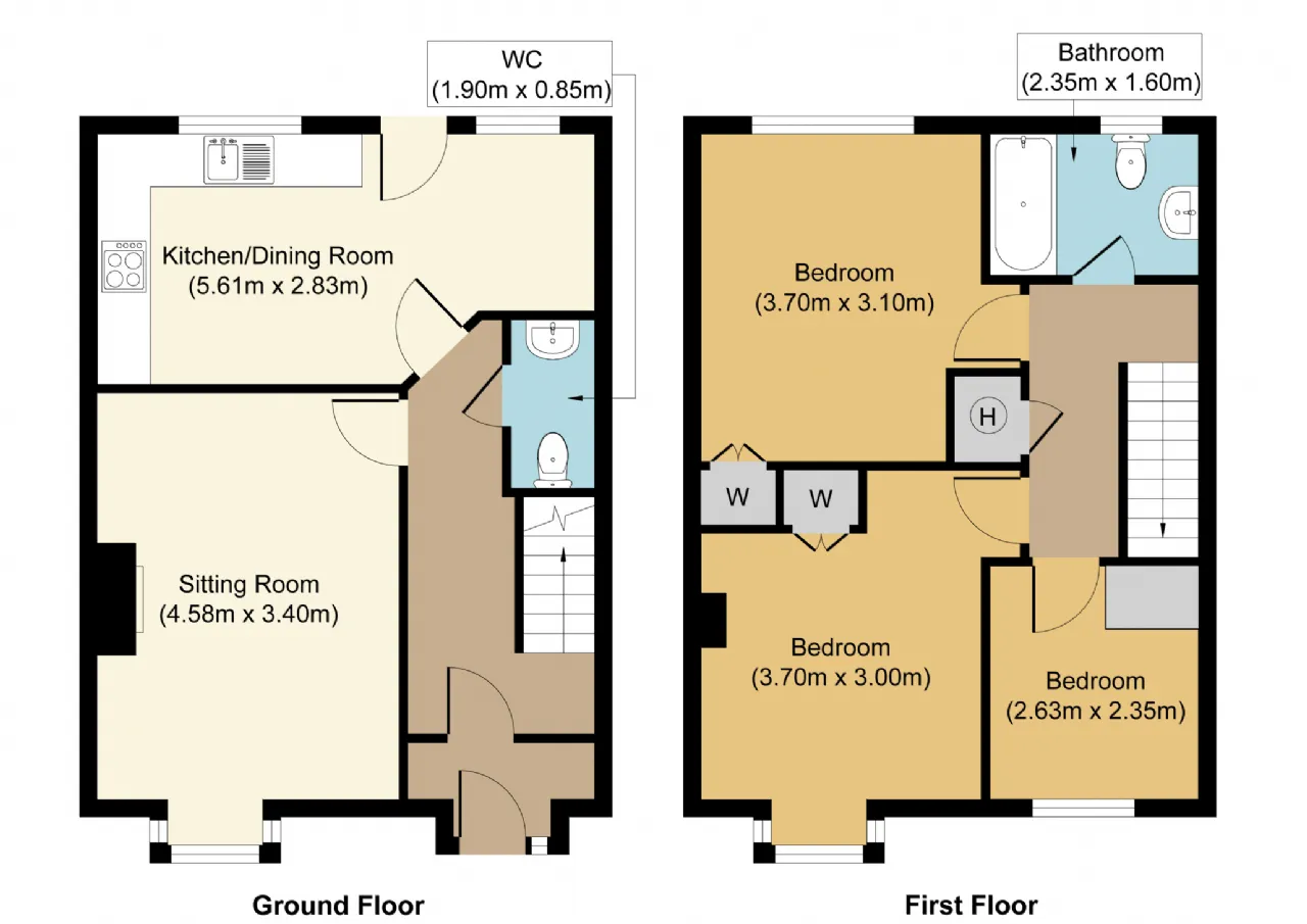 Upstairs there are two large double sized bedrooms. There is a family bathroom. The single bedroom would be an ideal home office to take advantage of the fibre to the home and gigabit cable broadband available in the area.