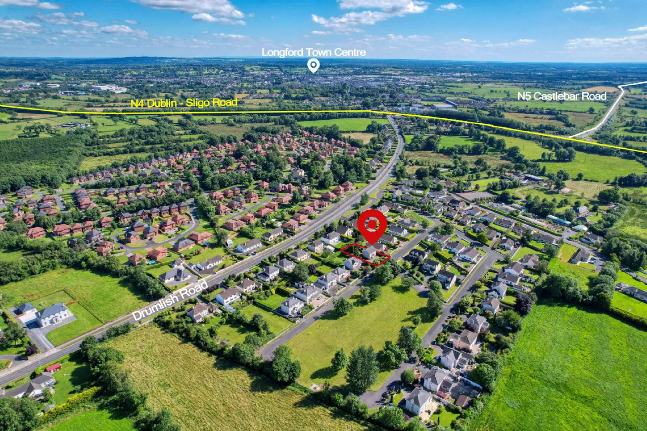 The house is situated just off the Drumlish Road in the long established residential area of Foynes Court. A good family area of all detached houses and a large park green, which this house looks out onto. The area is on the outskirts of Longford Town and is convenient to the Town centre, nearby shops and the N4 Dublin Sligo Road.