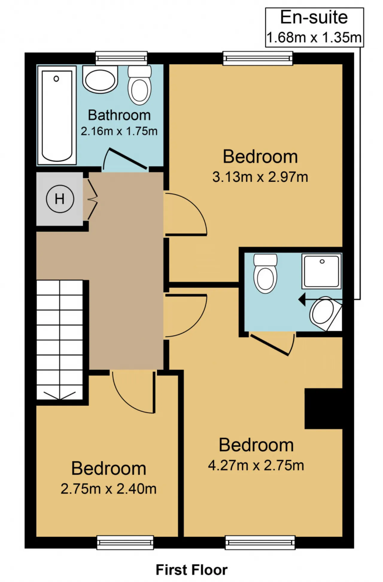 On the first floor there are two double bedrooms and a single sized bedroom. The master bedroom is ensuite with a pumped shower. The other two bedrooms are served by a stylishly tiled family bathroom.