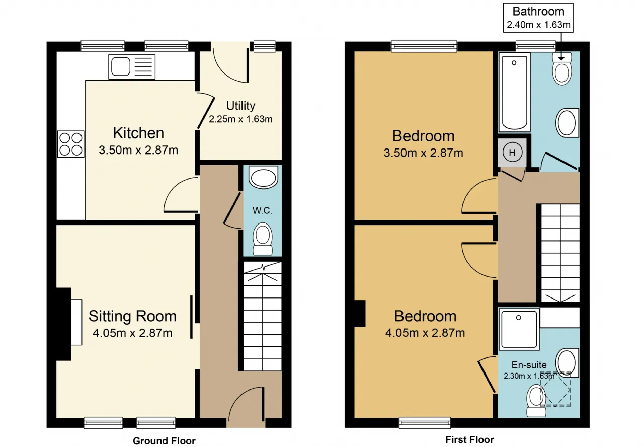 On the first floor there are two double sized bedrooms. The main bedroom has built presses and an ensuite with an electric shower. The second bedroom is a brightly painted children’s room, but could be converted to a home office for someone thinking of remote working taking advantage of the high speed internet available.