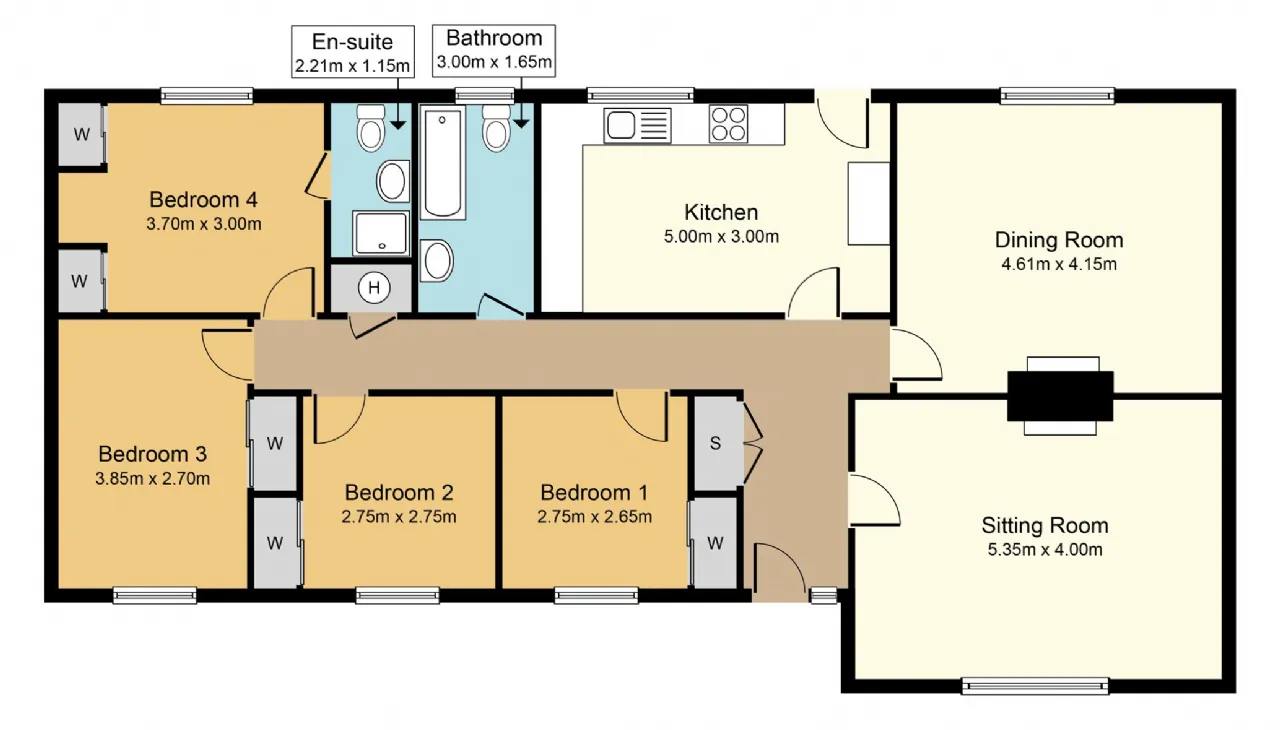 There are two double sized bedrooms and two single bedrooms, all of which have built in wardrobes. One of these single bedrooms would make an ideal study or home office, taking advantage of the Gigabit broadband that is available here. The main bedroom is ensuite and the other bedrooms are served by a family bathroom. House is including all furniture and appliances as seen.