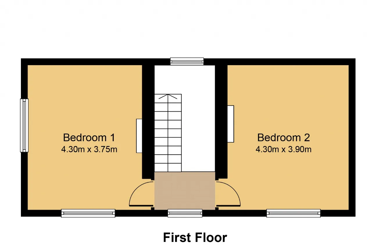 Upstairs there are two double sized bedrooms both with period style open fireplaces and vaulted ceilings.