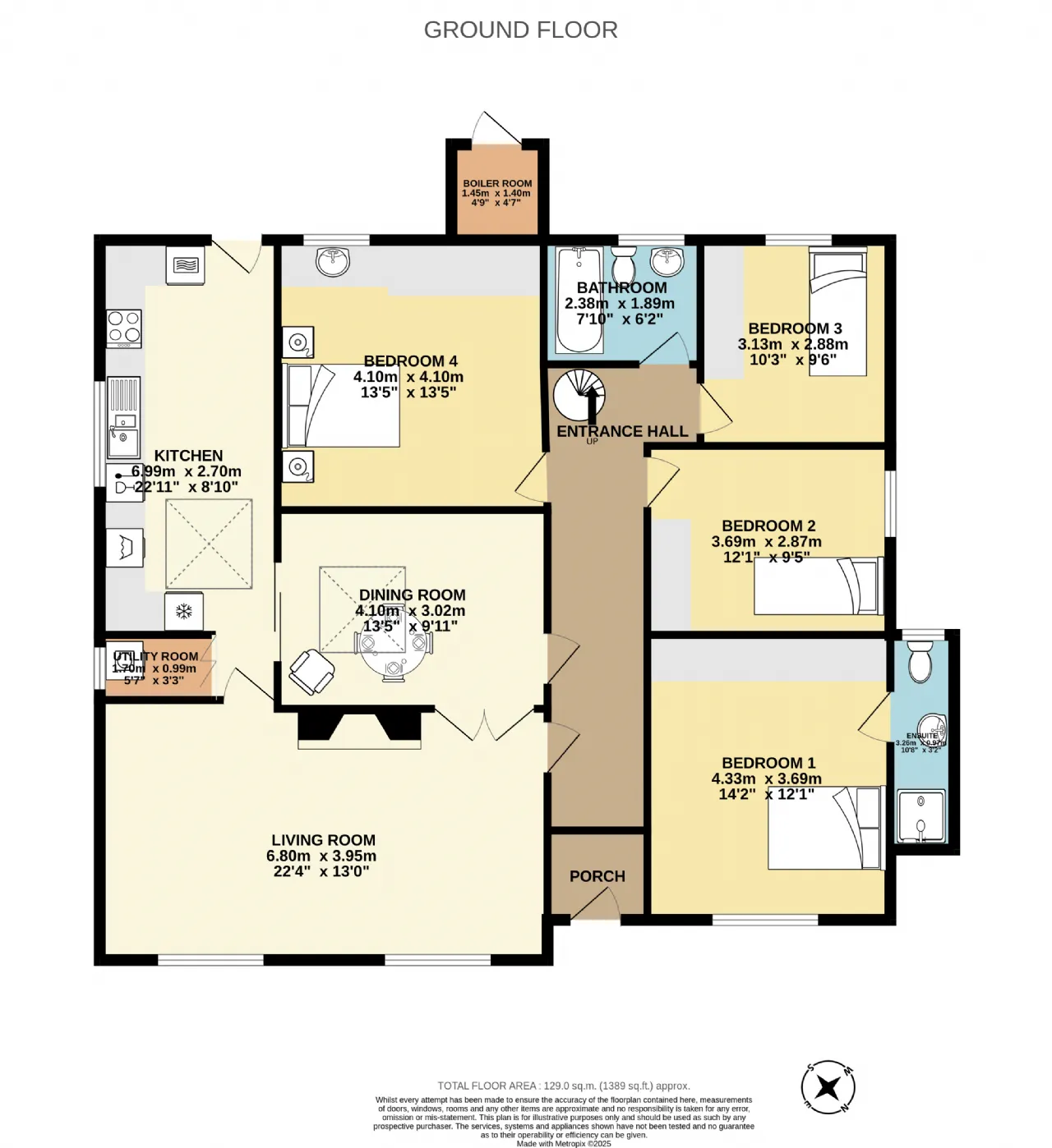 TOTAL FLOOR AREA: 129 sq.m. / 1,389 sq.ft. approx.