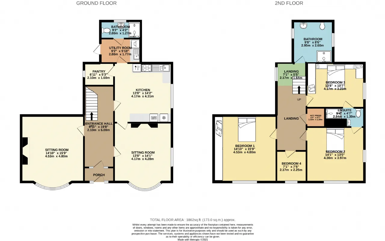 This stunning light-filled residence extends to c. 1,860sq ft and is beautifully presented in neutral colour schemes throughout with a host of period and art deco style features emanating from the build era of c. 1940’s with impressive high ceilings, cornicing, and an abundance of versatile and modernised accommodation, perfect for the growing family. The accommodation comprises of an impressive entrance hallway with original herringbone style solid wood flooring, two elegant reception rooms with solid wood floors stand either side of the entrance hall boasting generous glazing overlooking the mature wooded grounds to the front, high ceilings and cornicing offering a sense of opulence, feature fireplaces with solid fuel stove. A well-proportioned modern kitchen / dining room has all the ingredients of stylish family living with tasteful up to date fitted units offering plenty of storage and an additional pantry, utility room and wet room with w/c to the rear. Upstairs continues the elegant period / art deco theme of high ceilings and stylish features. There are three large double bedrooms - two with built in wardrobes and two bedrooms adjoin a jack n’ jill modern ensuite bathroom, a single bedroom and a contemporary family bathroom complete the picture.