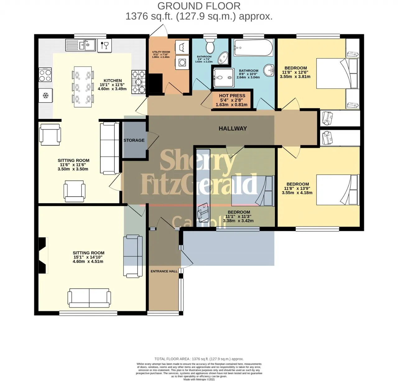 t TOTAL FLOOR AREA: 1376 sq.ft. (127.9 sq.m.) approx.