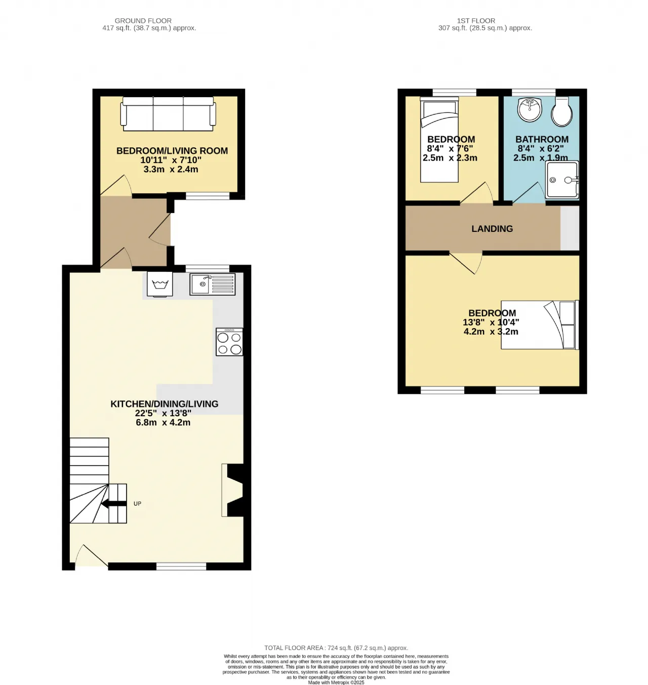 Total Floor Area 714sq.ft (67.2 sq.m) Approx