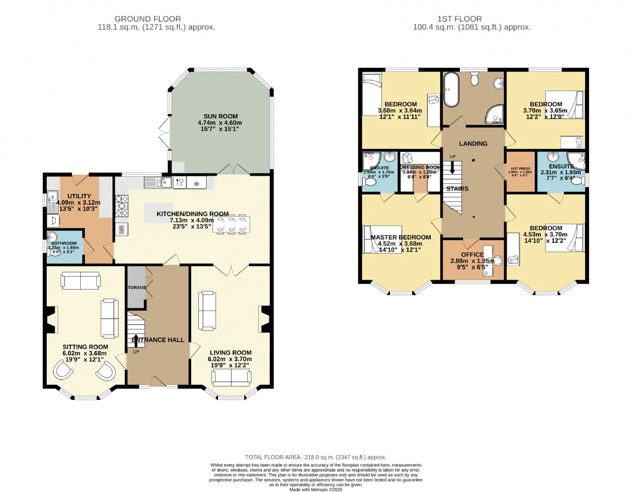 First floor accommodation sees an open and bright landing area with rooms cleverly laid out, four double rooms (master en-suite and walk in wardrobe), main family bathroom with bathtub and shower.