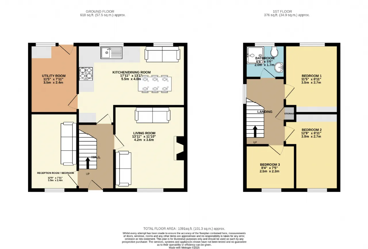 TOTAL FLOOR AREA: 101.33 sq.m. / 1,091 sq.ft. approx.