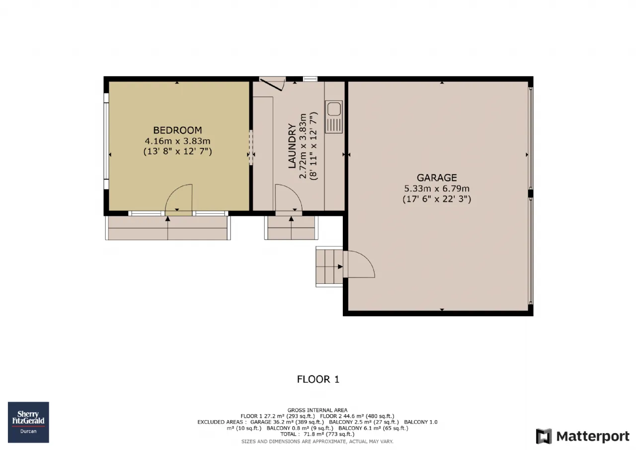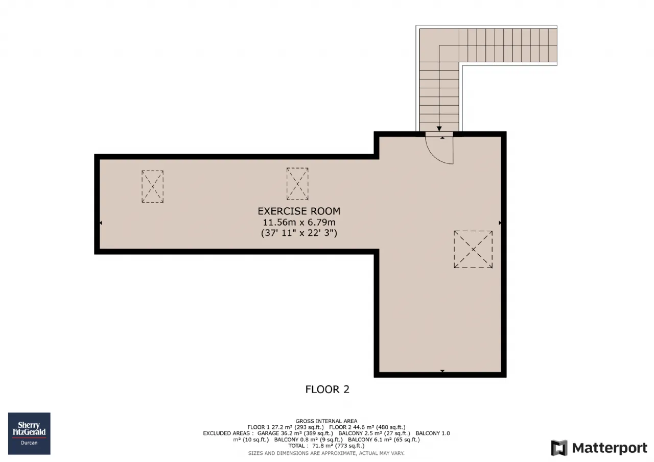 Across the courtyard, a detached building complements the main residence. The ground floor includes a treatment room, laundry area, and double garage, while the upper level offers a bright, spacious gym or games room, ideal for recreation and wellbeing.