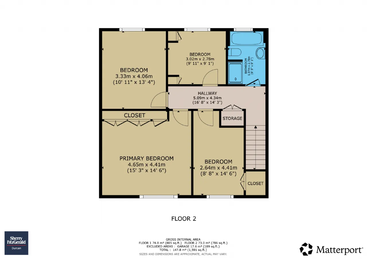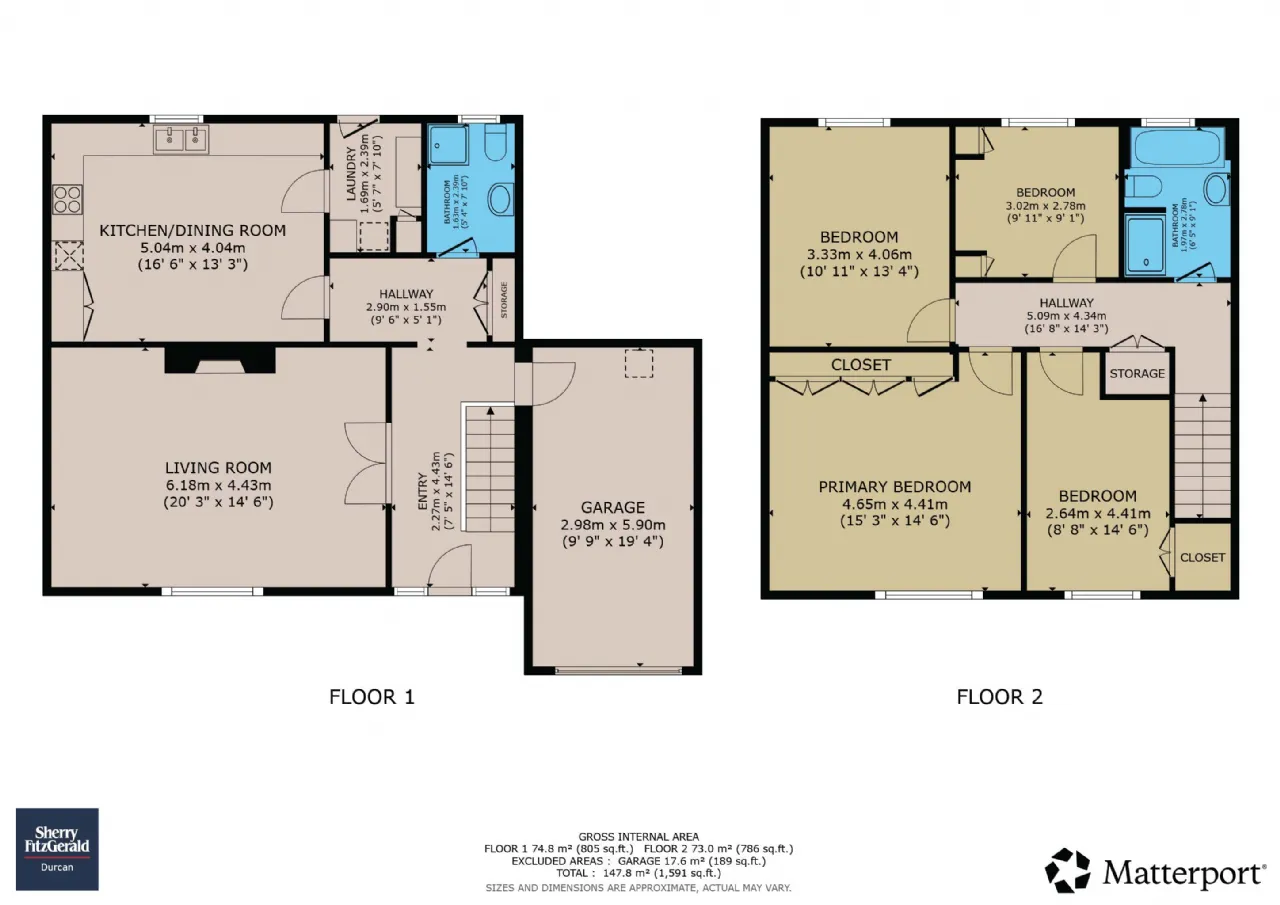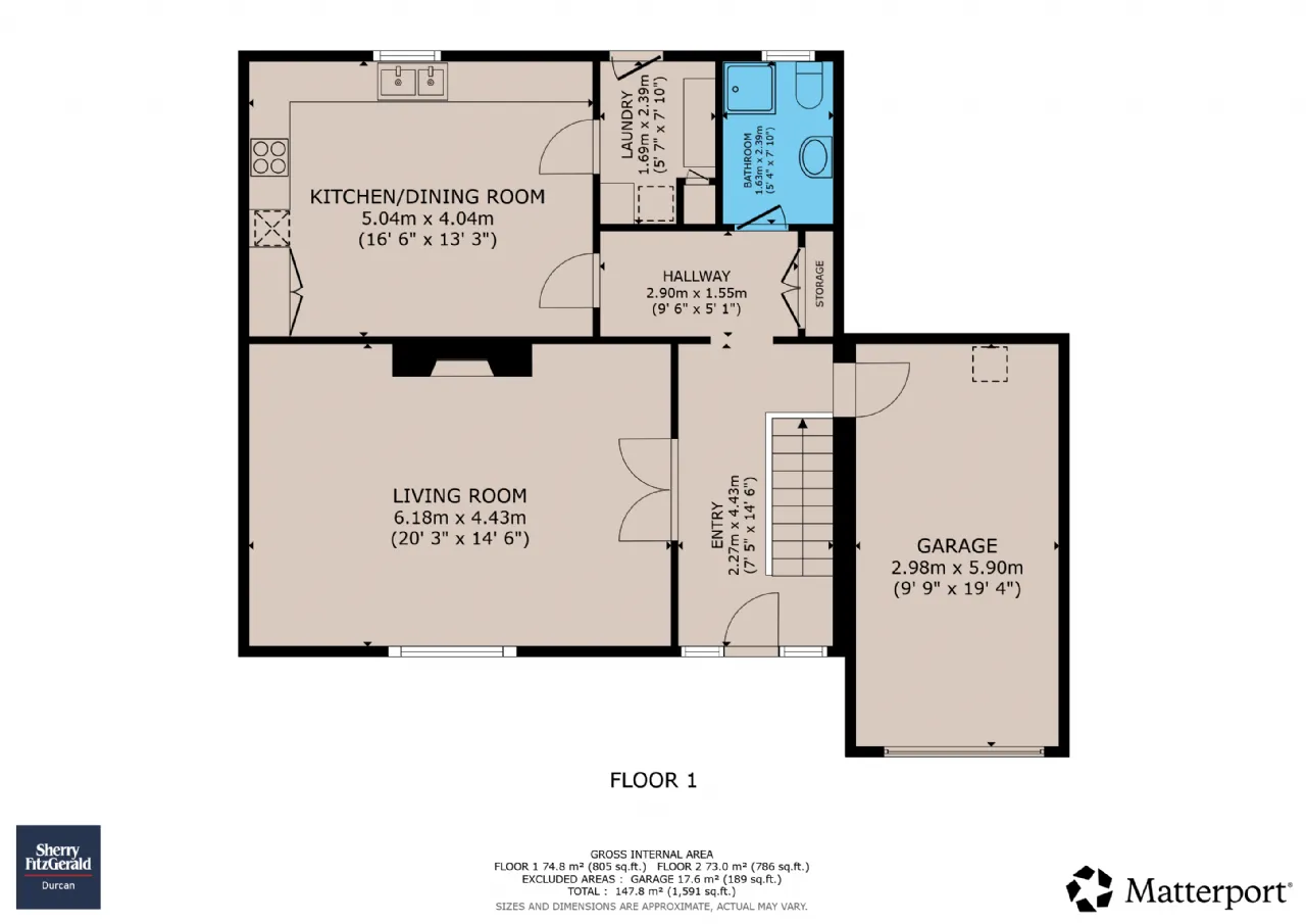 147.8 square metres / 1,591 square feet plus garage.