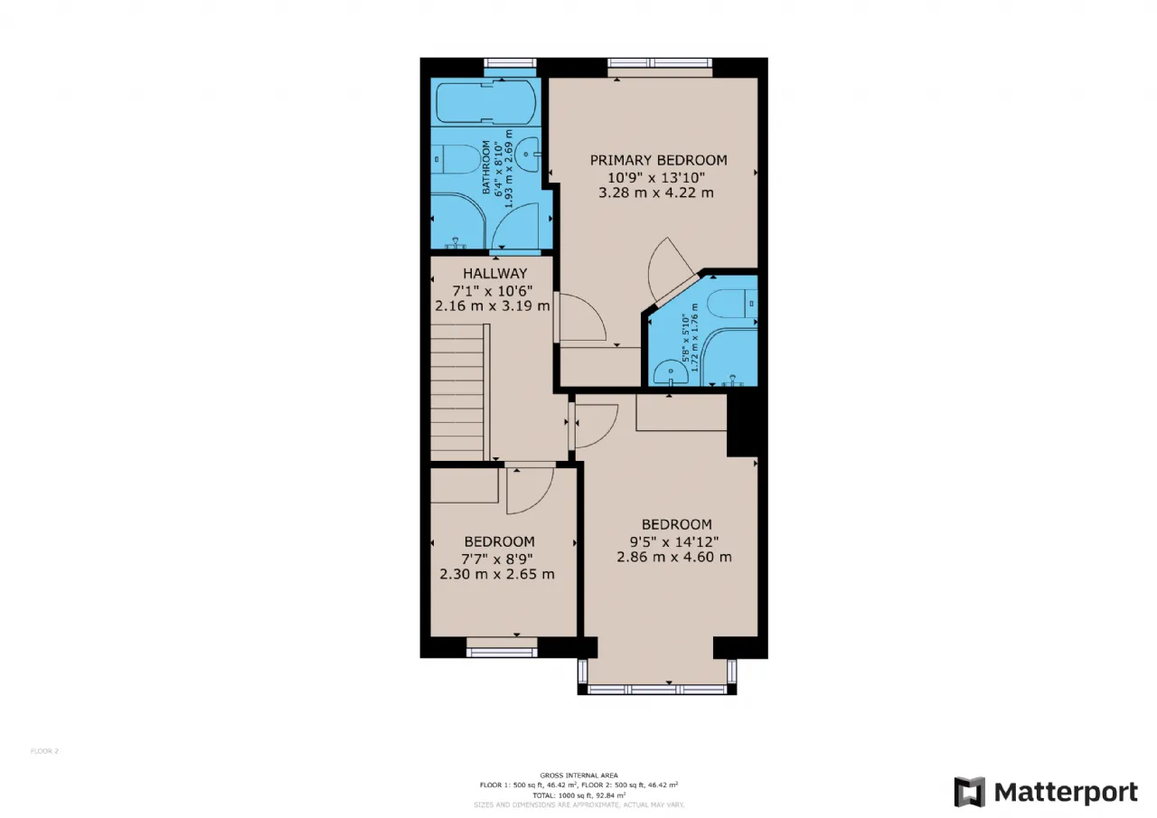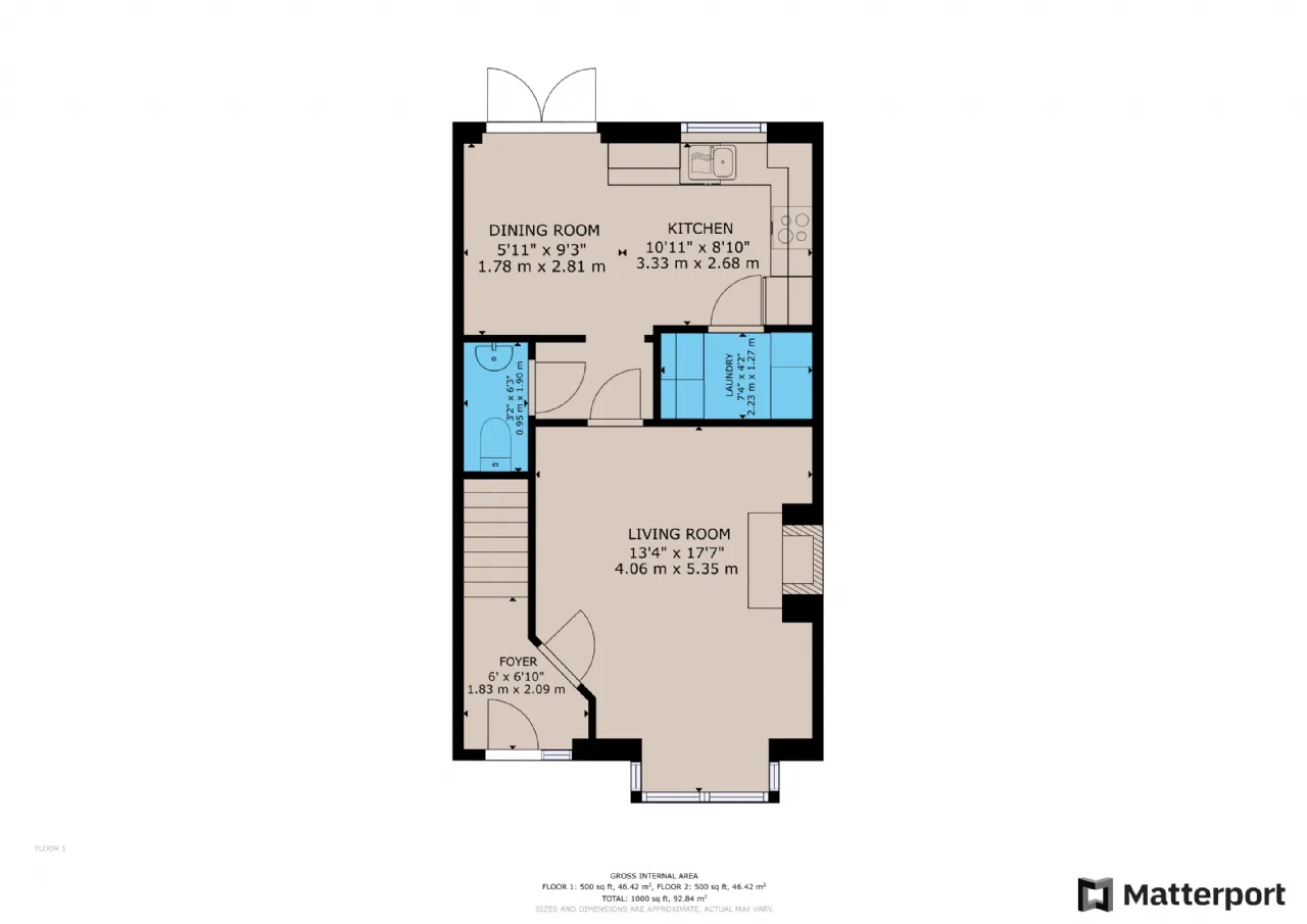 92.84 sq. mtrs. / 1,000 sq. ft.